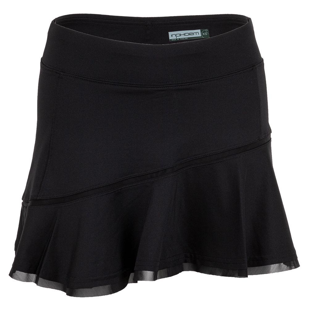 Experience a great fit and feel in the InPhorm Women's Core Classic 13.5 Inch Flounce Tennis Skort. This skort features a trumpet hem and a tailored waistline. It has asymmetrical piping across the front along with some decorative stitching at the bottom of the skort. It boasts a pair of built-in shorts and has moisture-wicking technology to help you stay dry and focused on the next point at hand. In addition to UPF 50+ protection, this tennis skort is a great length at 13.5 inches. Be sure to pair it with other InPhorm apparel for a truly winning combination.