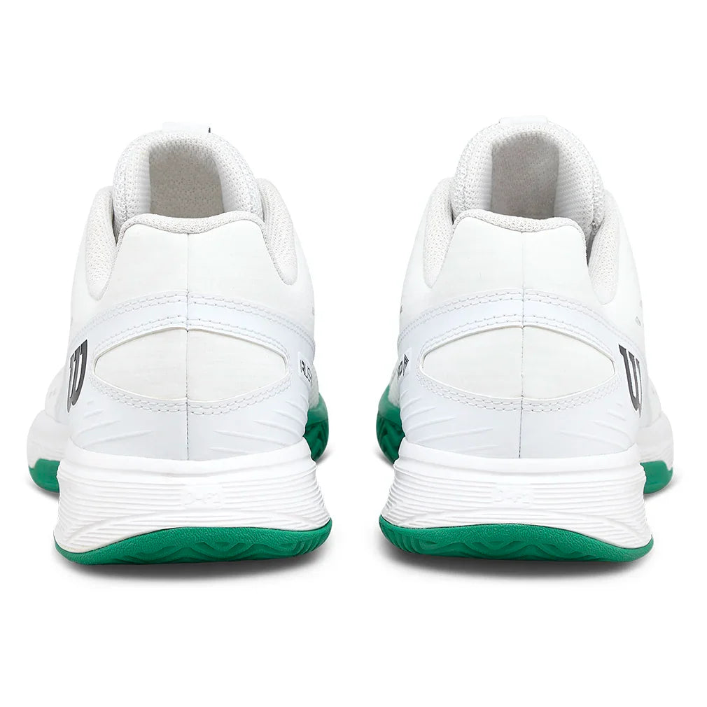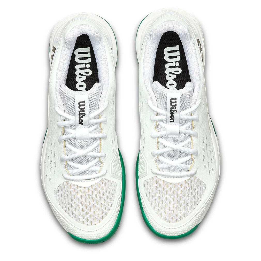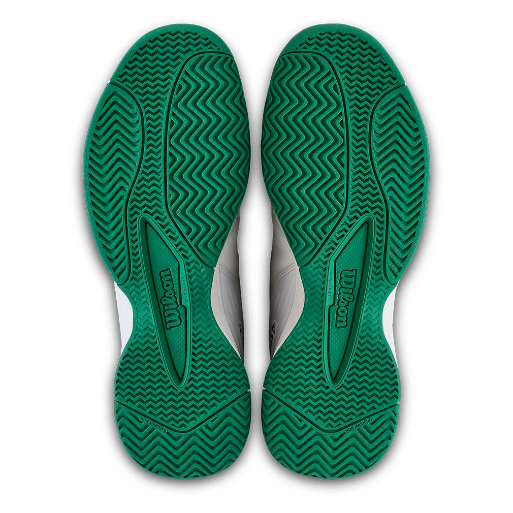 The Wilson Juniors' Rush Pro Tennis Shoes offer a breathable design for hot conditions. The EVA midsole adds cushion and support, while the Duralast outsole and medial drag pads help with durability.