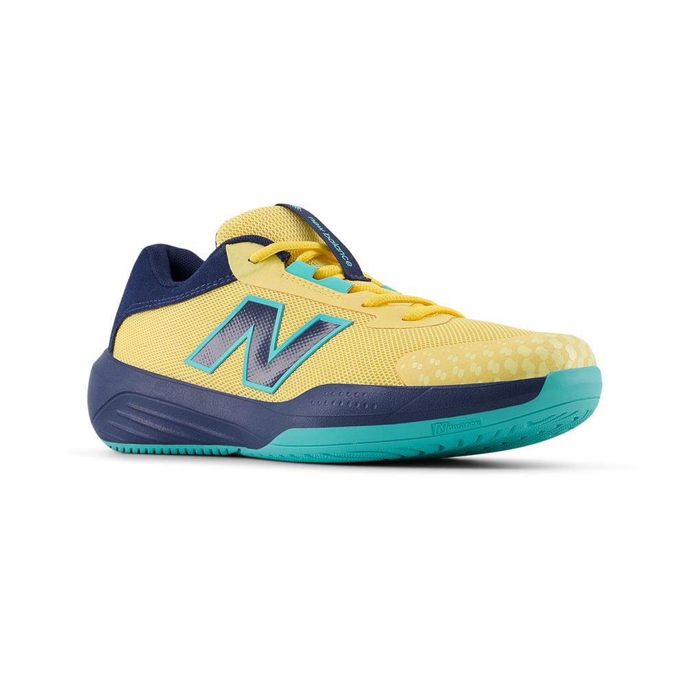 The New Balance Juniors' 996v6 Tennis Shoes have a speedy design that doesn’t skimp on comfort. The herringbone-patterned outsoles provide essential traction and won’t mark up floors when kids play indoors. NDurance technology helps the sturdy rubber outsoles last through match after match. The lightweight mesh uppers feature synthetic leather overlays at key points for added durability.