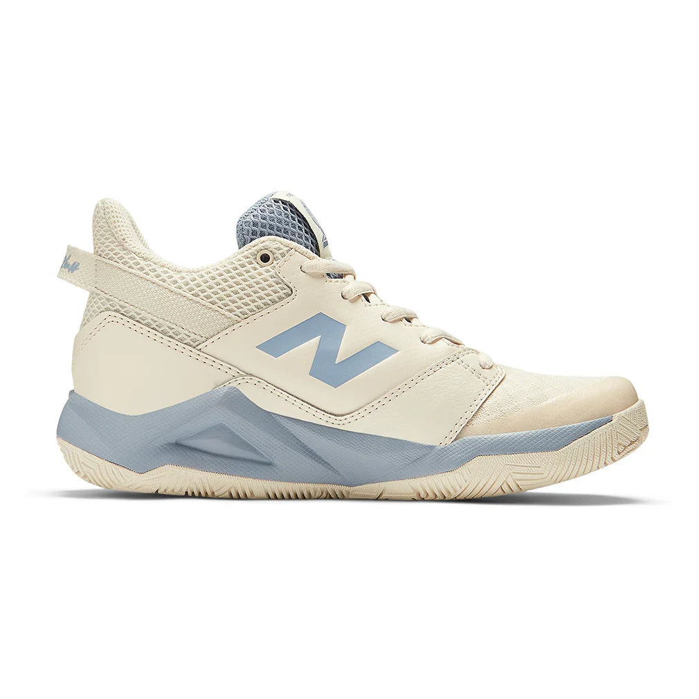 New Balance has finally unveiled the Juniors' Coco CG2 of the uber-talented tennis superstar Coco Gauff. This model is the Juniors' Coco CG1, and it features a unique mid-top design for plenty of stability and support. The shoe features a traditional tongue for ease of entry, and a gore band across the top of the foot for a locked-down fit. Sublimated mesh is used throughout the shoes' upper for comfort and breathability. The outsole provides long-lasting traction and durability. The Juniors' Coco CG2 is an aggressive strike from New Balance. The shoe offers support and stability to match any junior shoe on the market, and the midtop design resembles a basketball shoe.