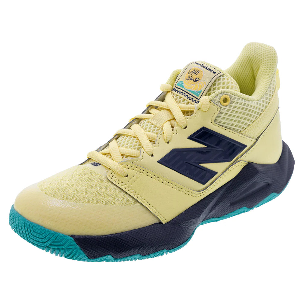 New Balance has finally unveiled the Juniors' Coco CG2 of the uber-talented tennis superstar Coco Gauff. This model is the Juniors' Coco CG1, and it features a unique mid-top design for plenty of stability and support. The shoe features a traditional tongue for ease of entry, and a gore band across the top of the foot for a locked-down fit. Sublimated mesh is used throughout the shoes' upper for comfort and breathability. The outsole provides long-lasting traction and durability. The Juniors' Coco CG2 is an aggressive strike from New Balance. The shoe offers support and stability to match any junior shoe on the market, and the midtop design resembles a basketball shoe.