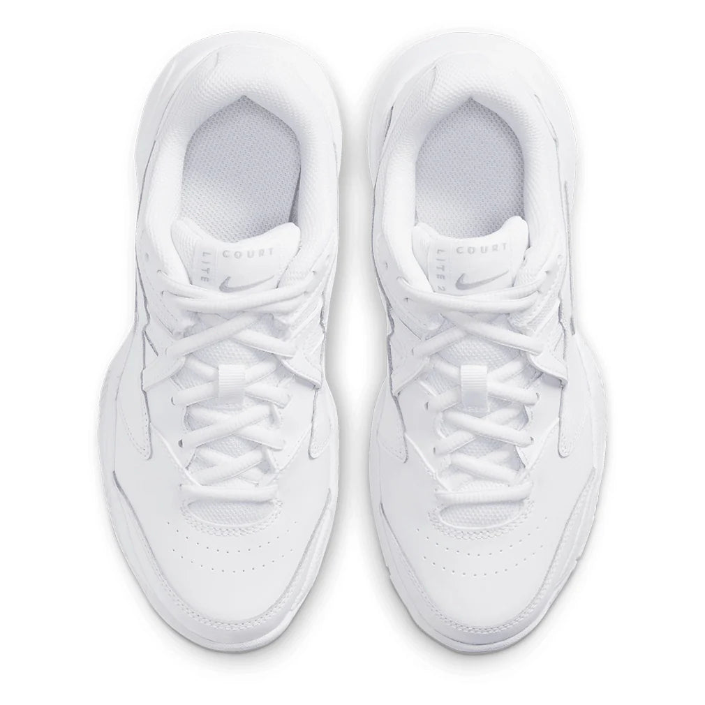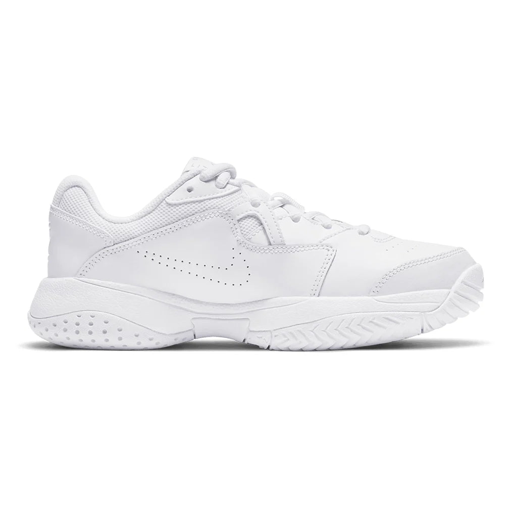 The Nike Juniors' Court Lite 2 Tennis Shoe offers cushion and support for junior players learning to love tennis. Crafted for hard courts, the outsole delivers predictable traction. For optimal support and fit, the upper is comprised of synthetic and leather materials. A nicely padded ankle collar and tongue keep the foot comfortably locked in, and the foam midsole pads every move on the court.