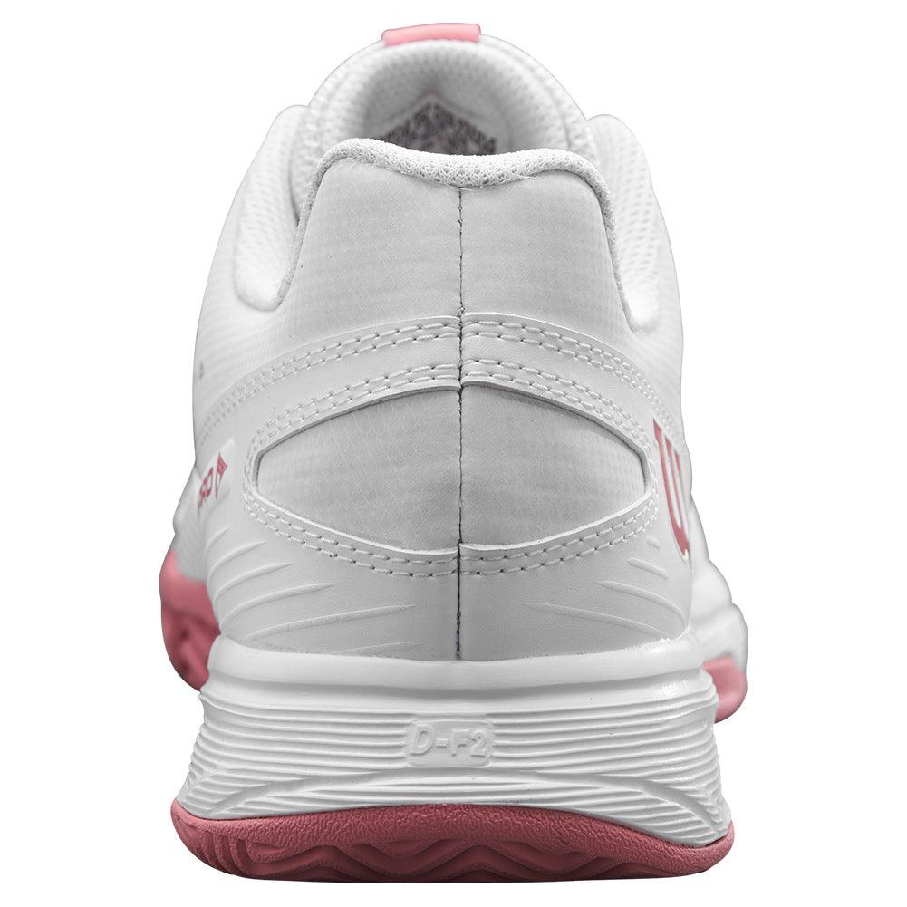 The Wilson Juniors' Rush Pro Tennis Shoes offer a breathable design for hot conditions. The EVA midsole adds cushion and support, while the Duralast outsole and medial drag pads help with durability.
