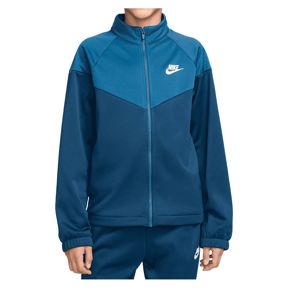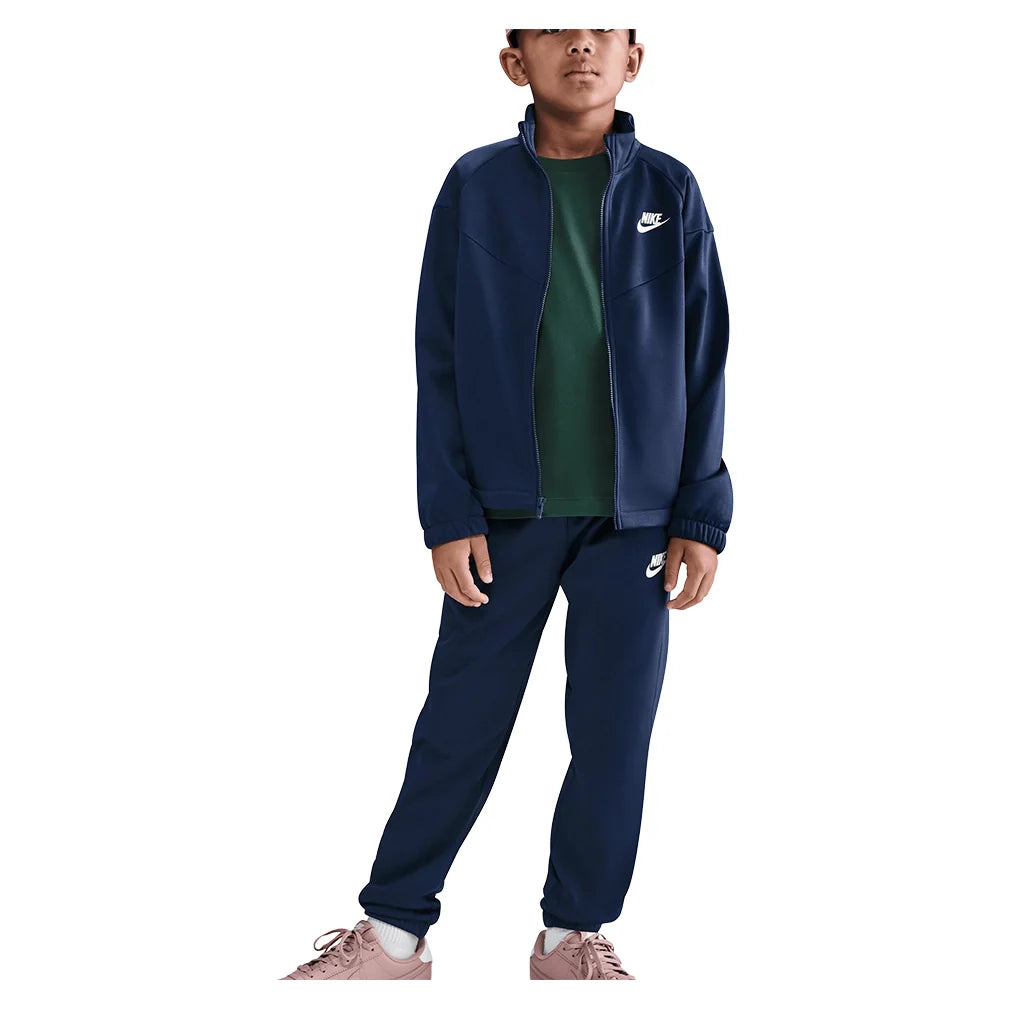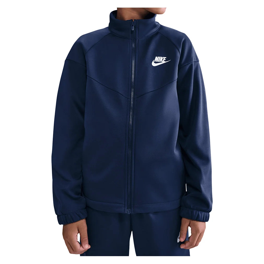 The Nike Juniors' Sportswear Dri-FIT Tracksuit is a must-have for the holiday season. This two-piece set includes a full-zipped jacket and pants made from lightweight knit fabrics. Sweat-wicking technology keeps the kids feeling dry and comfortable throughout their activities.