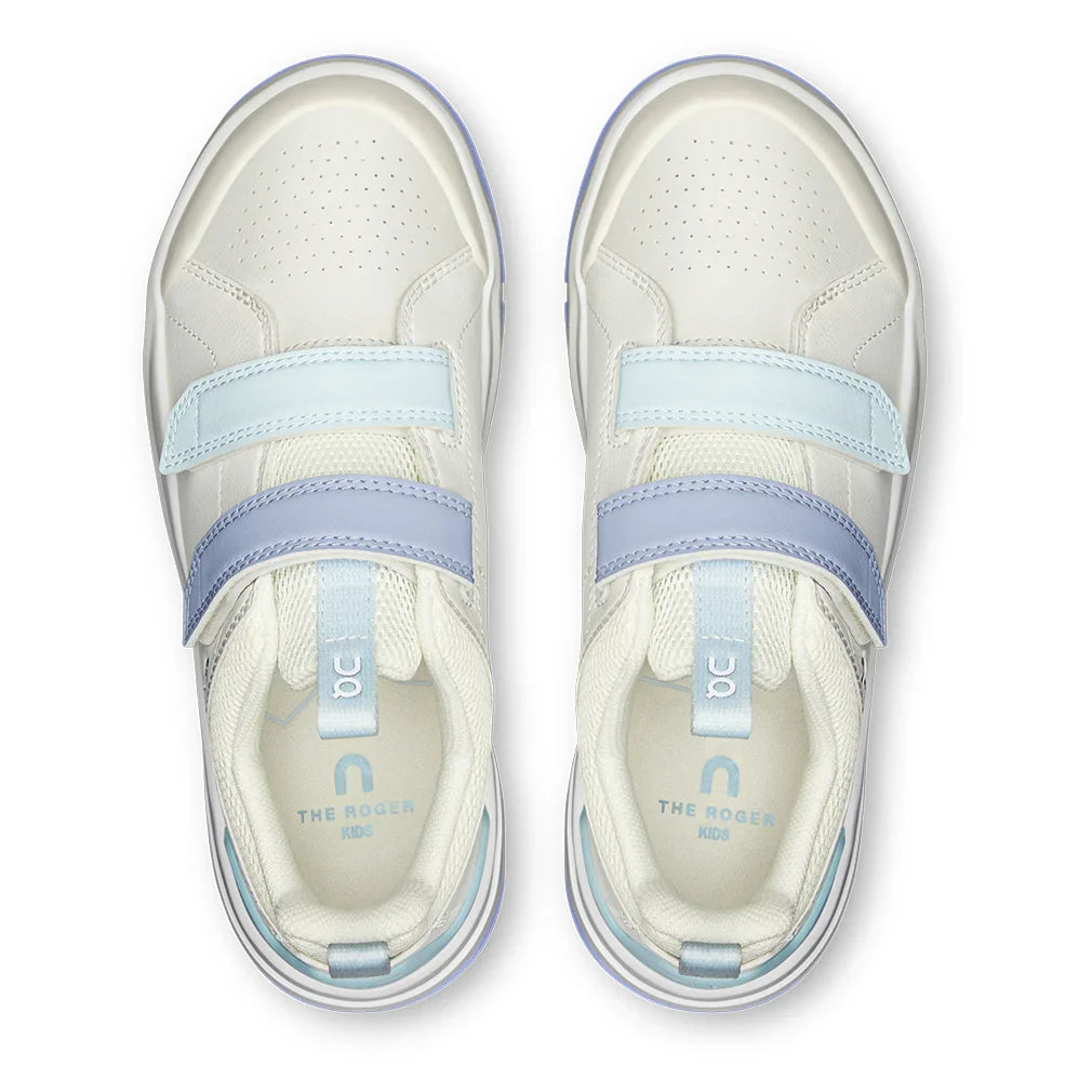 On Juniors' THE ROGER Shoes are the perfect footwear for growing feet. Kids will feel stylishly supported in these tennis-inspired kicks. These kids' shoes are a celebration of the classic, tennis-inspired silhouette. Hidden CloudTec® and a Speedboard® work together to support every step. And extra padding in the heel adjusts to growing feet. The spacious pull tabs at the tongue and heel make it easy to get in and out of the shoe, while powerstraps ensure their feet are snug and secured. Pull tabs on the heel and tongue to suit little hands.