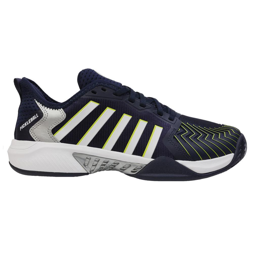 The K-Swiss Men's Pickleball Supreme Shoe is designed for competitive players who demand the most from their footwear. The shoe is lightweight and incorporates K-Swiss' Surge 7.0 midsole cushioning for energy return. The upper features a new Durawrap Flex for better abrasion resistance and the tough Dragguard 7.0 outsole.