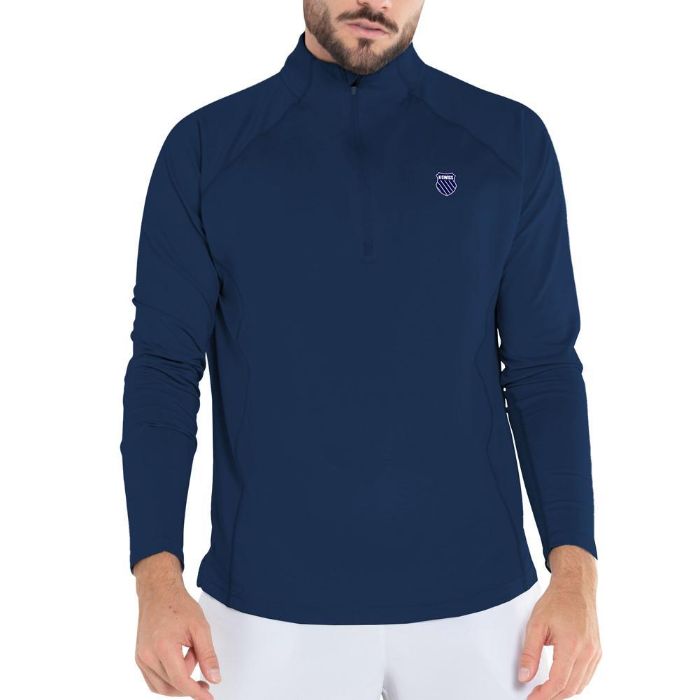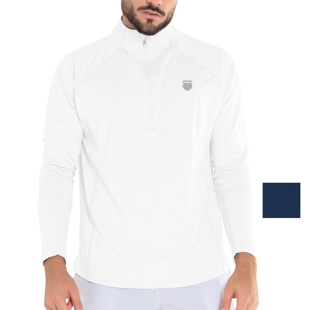 Get into the zone with the K-Swiss Men's Swift 1/4 Zip Tennis Long Sleeve. This performance shirt is designed with strategically placed seams to aid your movements and let you do your best at the tennis courts or while working out. Its mock neck collar traps heat effectively to keep you warm throughout your activities. The classic K-Swiss logo adds the finishing touch so you know you're backed by a legacy of quality.