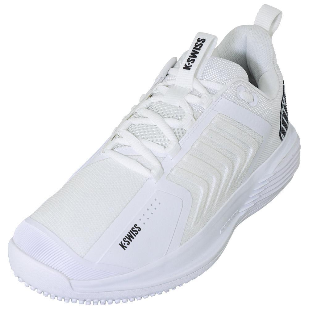 K-Swiss Men's Ultrashot 3 Grass Tennis Shoes are designed to be lighter and more comfortable than the original Ultrashot for competitive tennis players. They feature the same durability and stability that the previous model was known for, but introduce new Surgelite midsole technology for lightweight cushioning and energy return.