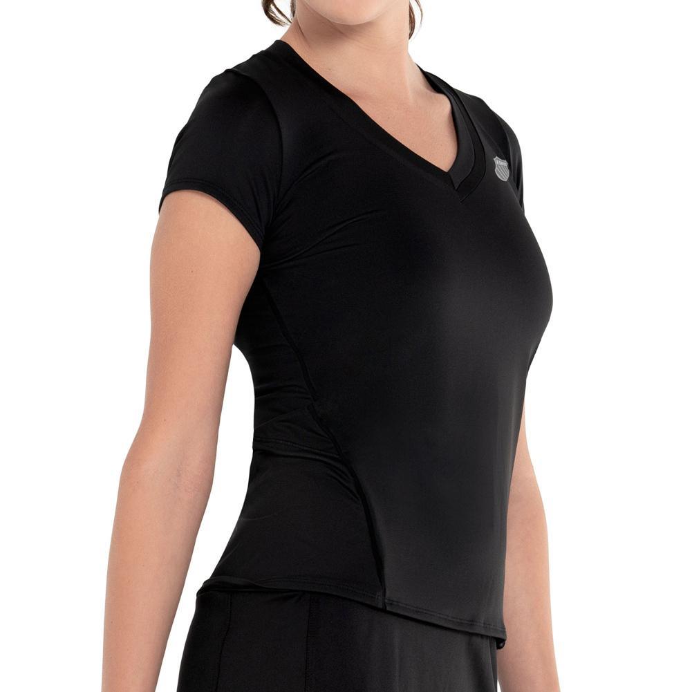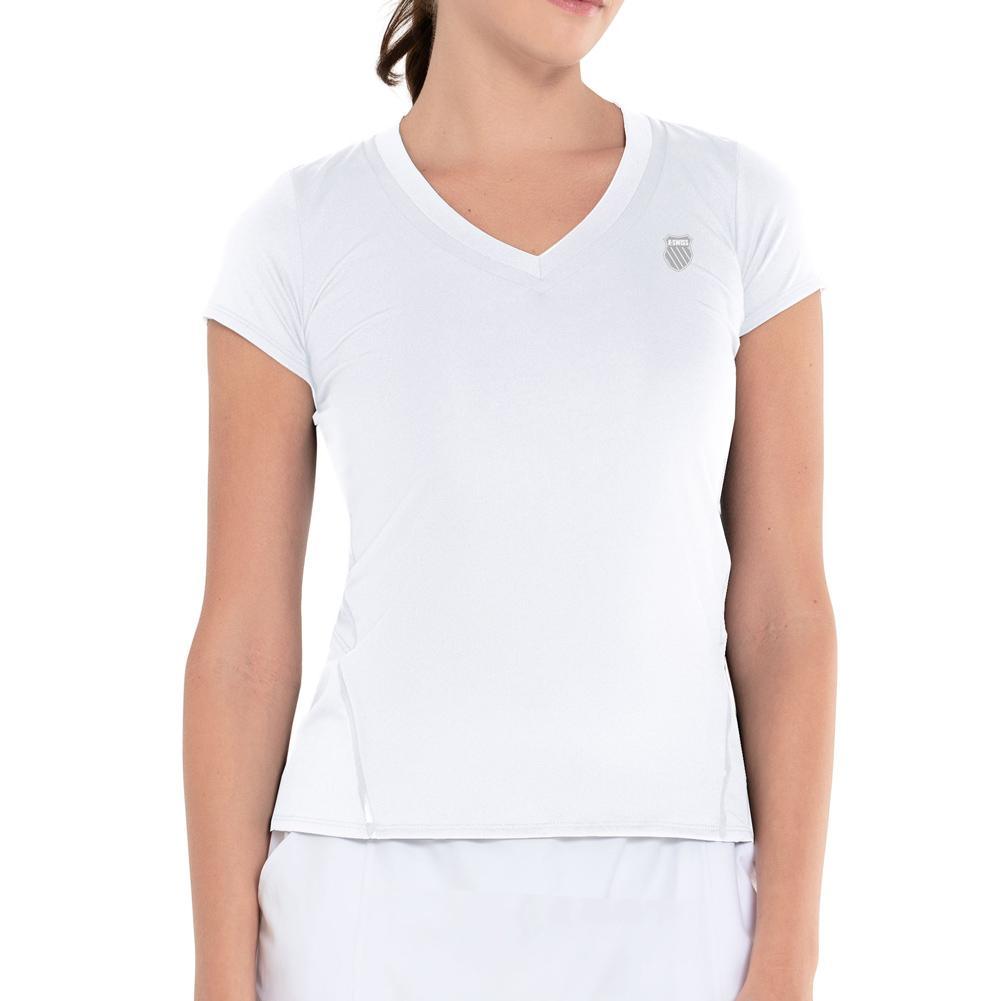 The KSWISS Women's Excel V-Neck Tennis Short Sleeve is the perfect choice for your active lifestyle. Made with lightweight and breathable fabric, this shirt will keep you cool and comfortable during even the most intense matches. Its moisture-wicking technology will help keep you dry and focused, while the V-neck design adds a touch of style. Whether you're hitting the courts or running errands, the KSWISS Women's Excel V-Neck Tennis Short Sleeve has got you covered.