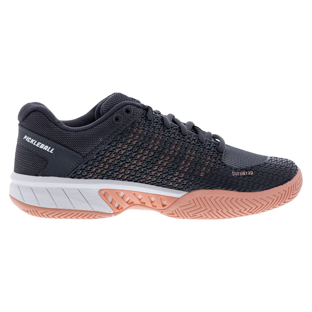Get the first ever K-Swiss Women's Express Light Pickleball Shoes. This lightweight pickleball shoe takes inspiration after the popular Hypercourt Express tennis shoe giving players ultimate comfort, and breathability on court. It's specifically designed to support on-court movement and performance needed for the sport. It's an all-around shoe, perfect for the new or frequent player and features a customized Pickleball sockliner.