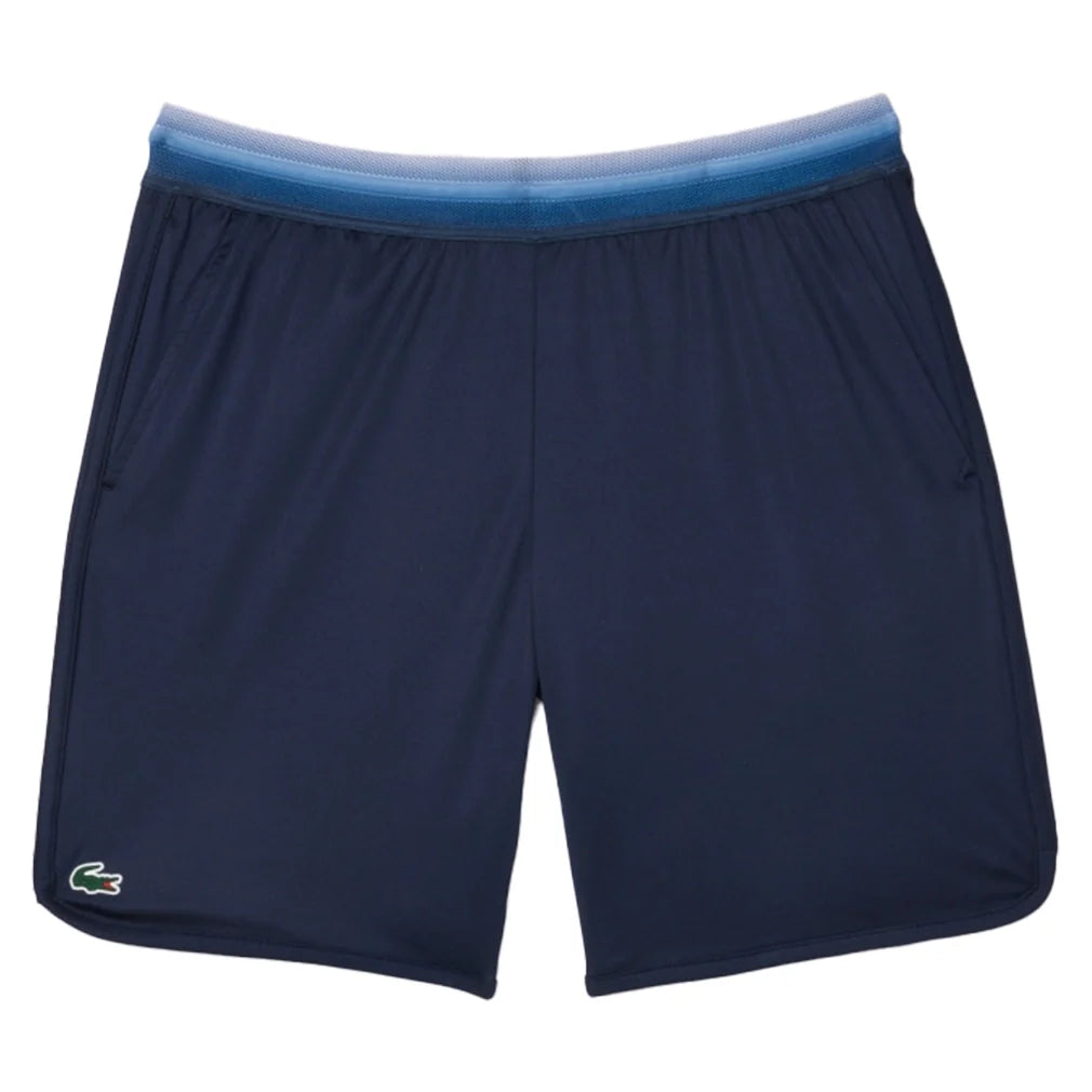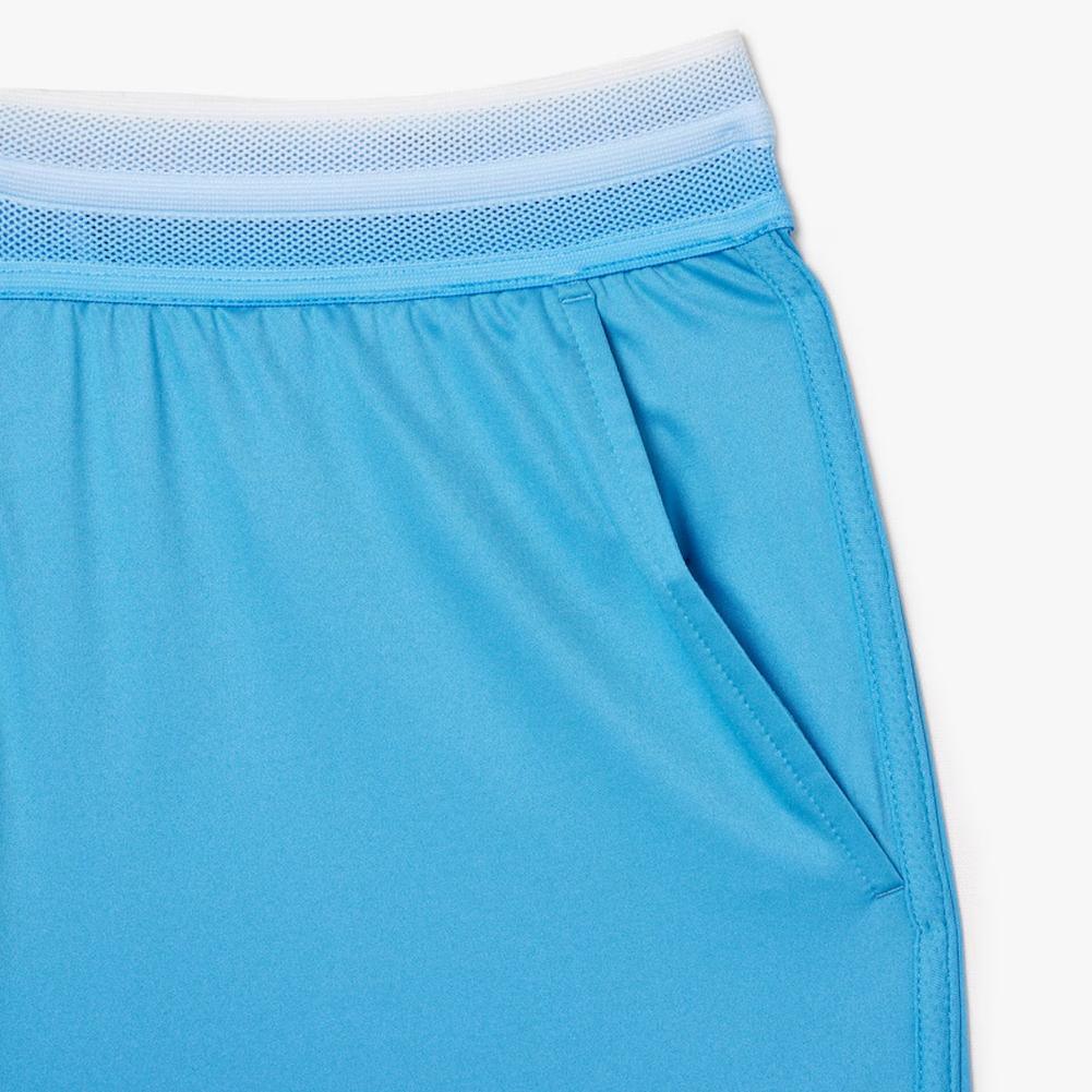 Race to every ball with the Lacoste Men's Daniil Medvedev Ultra-Dry Tennis Short. Designed for comfort and performance, this short comes with Ultra-Dry technology that helps you stay cool while you play. Enjoy long hours on the court with pockets on either side, an elastic waistband, and a drawcord for added comfort and convenience. The iconic Lacoste alligator logo can be seen over the right leg under the pocket.