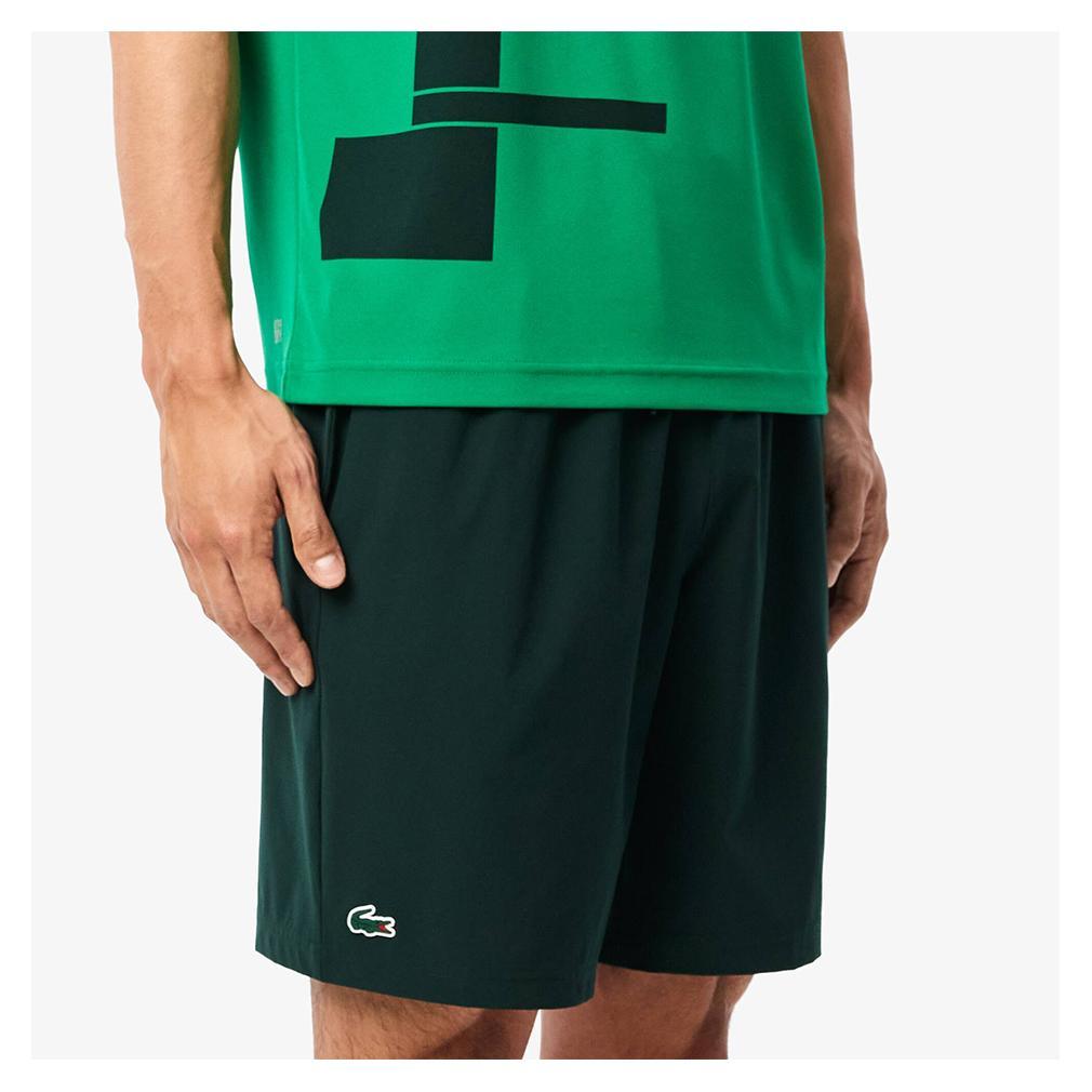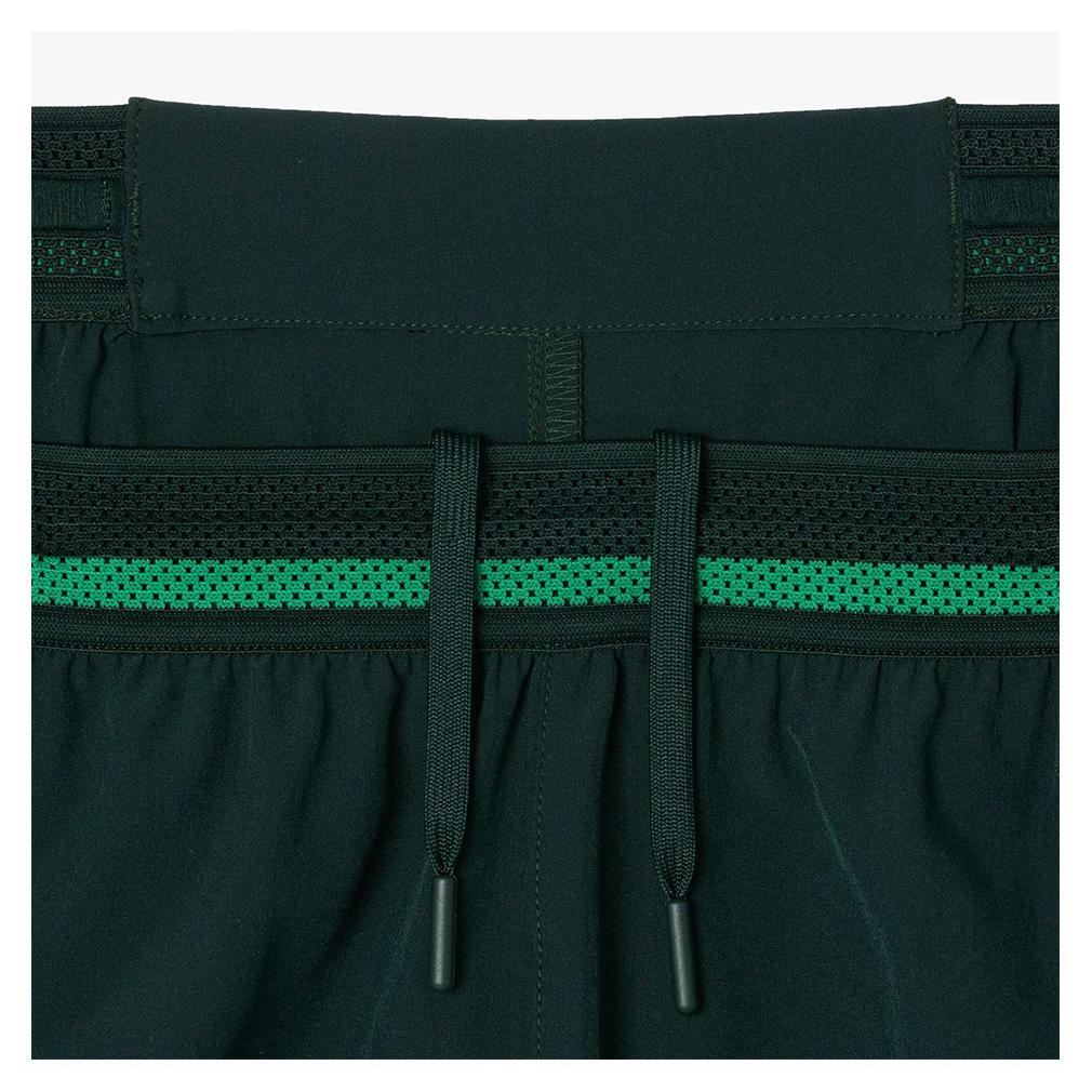 Try on the Lacoste Men's Novak Djokovic Ultra-Dry Tennis Short to elevate your game. The flat waistband comes with an inner drawcord for easy-to-adjust comfort, plus the inner gusset between the legs gives additional flexibility. Ultra Dry technology wicks sweat away for cooling relief on the tennis court. Lacoste's signature gator logo on the right adds the finishing touches with an iconic look.