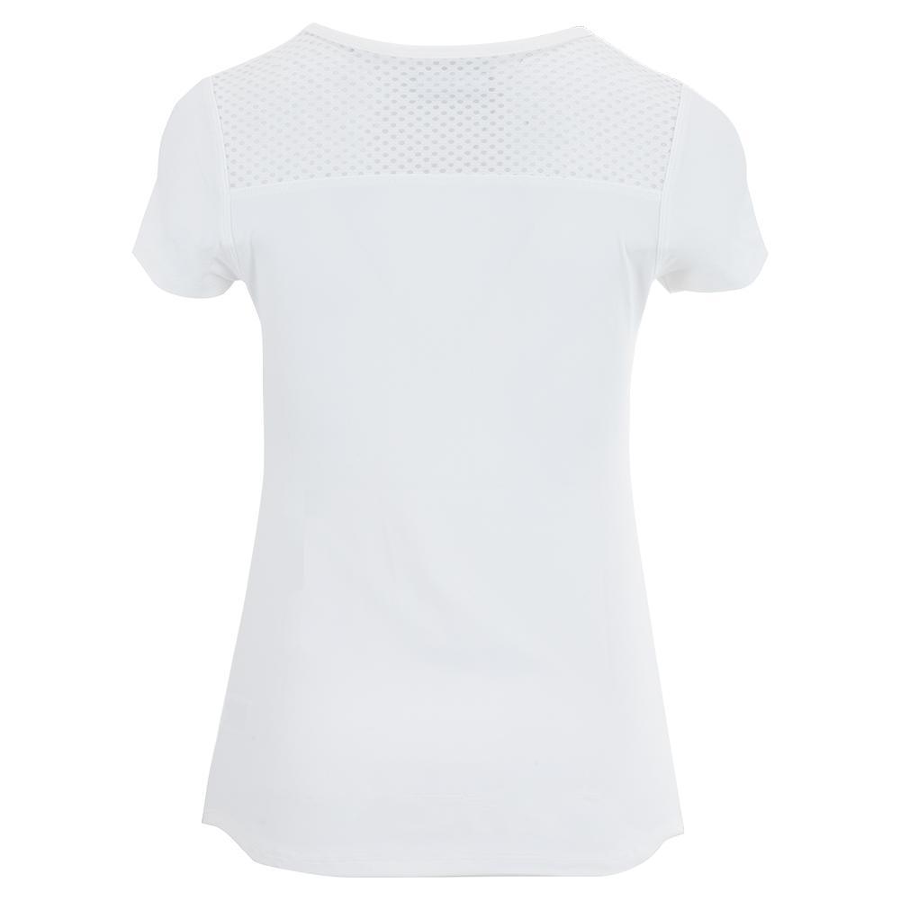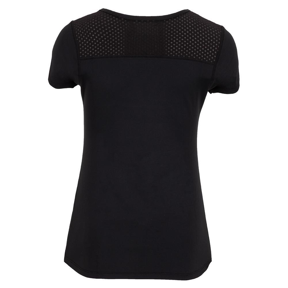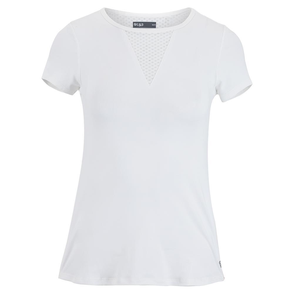 Get into the action with our Lija Women's Deep V Tennis Top. This top has a simple crewneck with a tonal mesh v-neck panel. It has a classic flattering silhouette and a standard short sleeve length. The tee-shirt has a skimming fit and is fully equipped with moisture-wicking technology, quick-drying fabric, and four-way stretch.