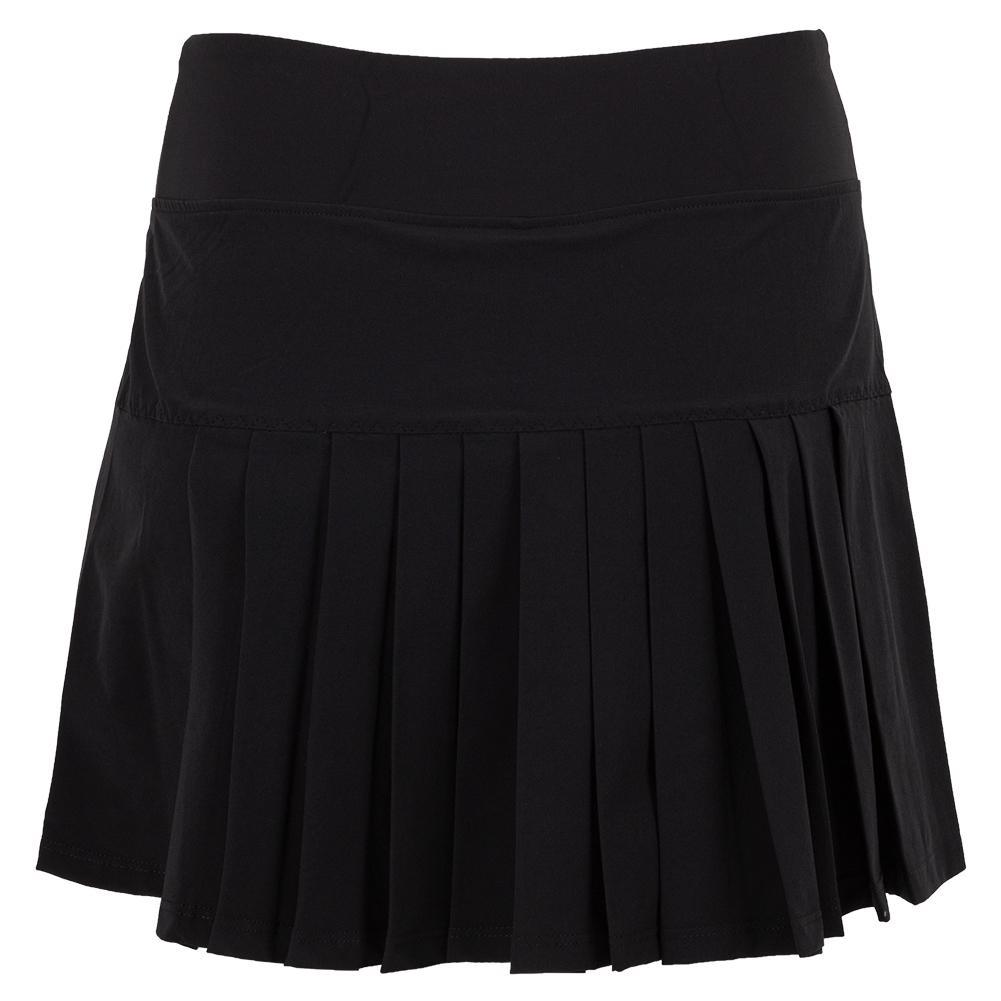 Put the finishing touch on your tennis look with the Lija Women's Deuce Tennis Skort. This wardrobe must-have, available in black or white, has a flattering A-line silhouette, pretty back pleats, a wide waistband to keep you supported and comfortable, and built-in shorts for extra coverage and a handy place to tuck away a ball. Lija's high performance fabric is equipped with moisture-wicking technology for quick drying, stretch properties for optimum flexibility, and UPF protection against the sun's harmful UV rays, making the skort ideal for both practice sessions and match days alike! Pair with the Lija Women's Power Tennis Tank for a winning look!