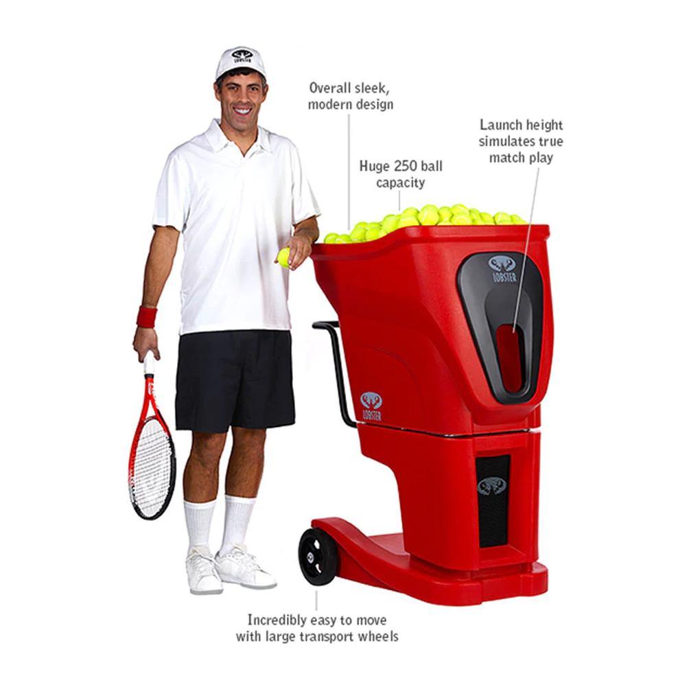 The Lobster Sports Phenom Club Series Tennis Ball Machine offers full random oscillation. The modern design allows the machine to throw balls throughout the entire spectrum of the court mixing up speed, spin, trajectory, oscillation, and feed rate. This fully random technological advancement allows for the Phenom to realistically simulate true match play, a feature that is unsurpassed by any machine in its class. Features 6 preprogammed shot routines: slicer, power baseliner all courter, lefty, grinder, and moonballer. Machine does not include a remote. If you want to be able to program new sequences check out the Phenom 2. For more information about ball machines, check out our buyer's guide.