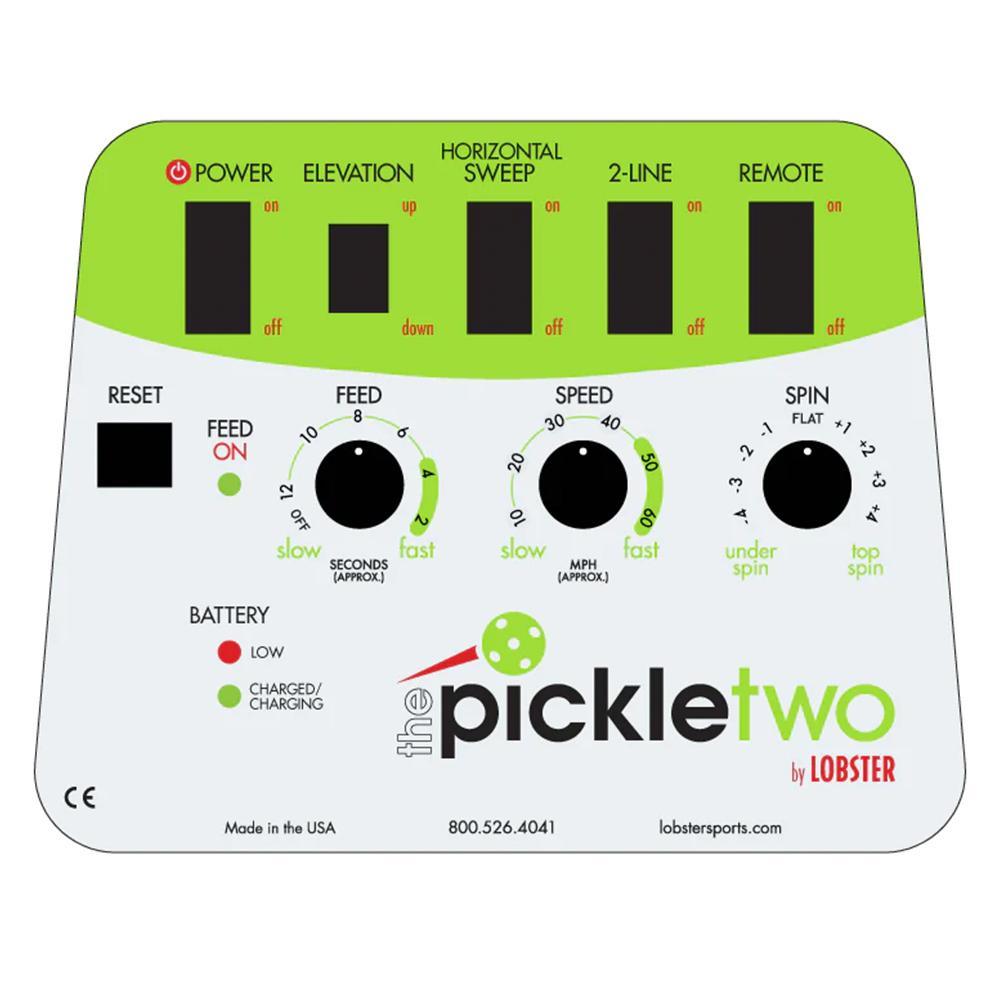 The Lobster Pickle Two with 10-Function Wi-Fi Remote Control for Apple improves on the original pickleball machine. This machine is much easier to use and offers improved training. The random oscillation found on the pickle two includes 2-line oscillation. With the 2-line feature, the ball is delivered to two alternating pre-set spots on the court, throwing one ball to the forehand side followed by one ball to the backhand side. This is great for singles or doubles training. Electronic elevation from makes for simpler and speedier angle adjustments. A larger battery than the standard model lets you stay on the court longer, running 6 to 8 hours per charge. Includes a 10-function Wi-Fi remote control for Apple.
