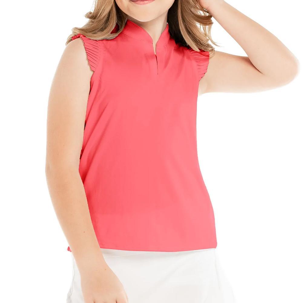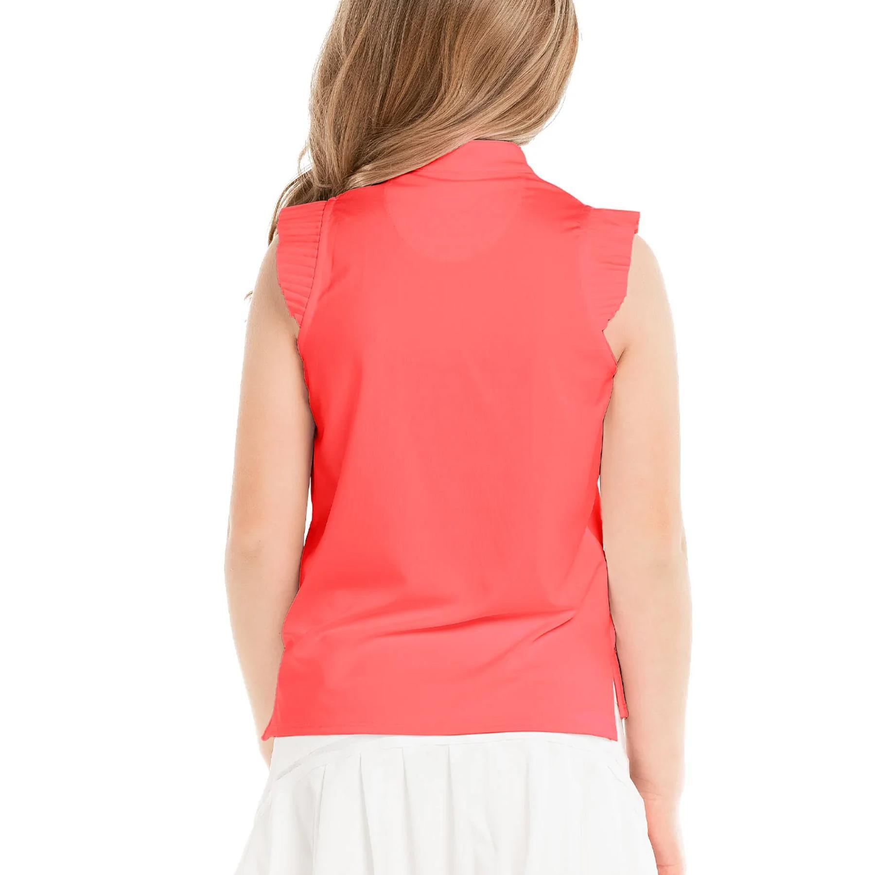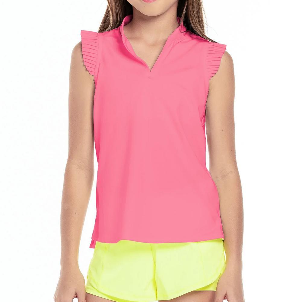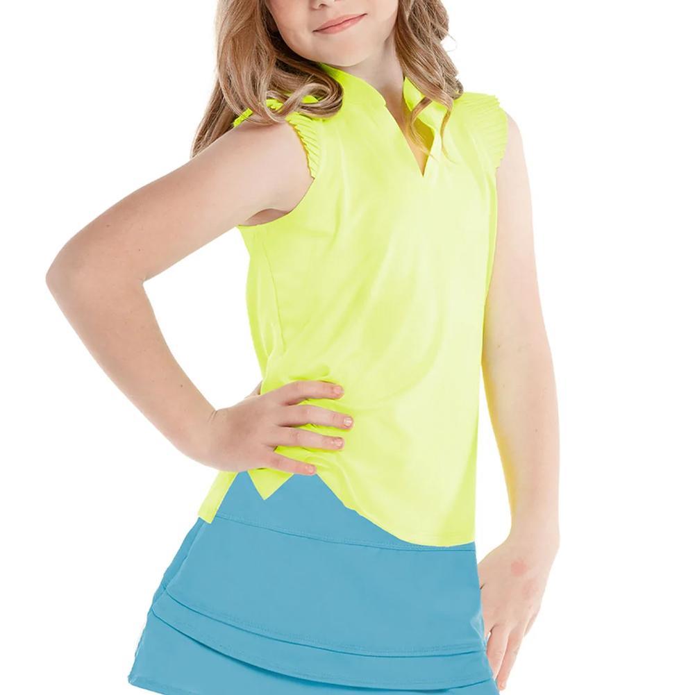 Get your play on in the Lucky in Love Girls' Pleat Me Up Tennis Tank! The high neckline, collar, ruffle mini sleeves will provide advanced coverage for your shoulders, chest, and neck. The wide sleeve holes enhance the tops breathability, so you can stay cool all day. Stay fresh and fashionable with Lucky in Love!