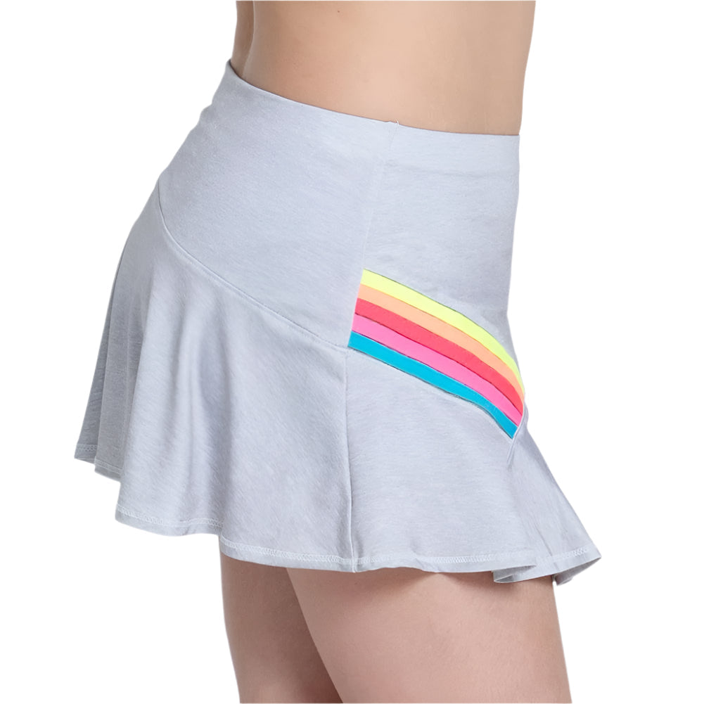 Let her showcase her style with our Lucky In Love Girls' Tennis Skort, a modern take on the classic sports skirt. Designed with an easy flounce shape, it allows for freedom of movement while she plays. The mesh insert offers enhanced breathability. Redefine her on-court look with the Lucky In Love Girl's Prisma Stripe Tennis Skort and elevate her game with style and comfort.