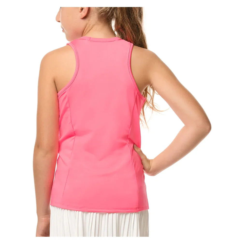 Amp up her style in the Lucky In Love Girls' V-Neck Cutout Tennis Tank in Pink. The cutout details at the neck elevate the classic tank to give her a trendy and modern look. She'll enjoy a free range of motion to perfect each shot with the sleeveless construction and stay dry every step of the way with moisture-wicking properties. Pair this with the Lucky In Love Girls' Cross Trainer Tennis Skirt in Pink for a statement-making full look!