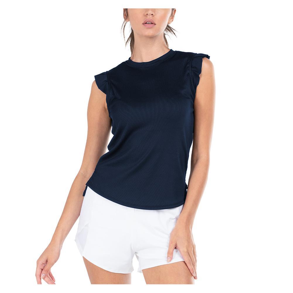 Discover the power of LUV with the Lucky in Love Women's Bring It On Rib Tennis Tank. LUV stands for UV protection rated at UPF 50+, which blocks out up to 98% of the sun's most harmful rays to minimize sun damage to your skin. Frills at the arm holes elevate your style to the next level for a playful look that doesn't compromise on performance.