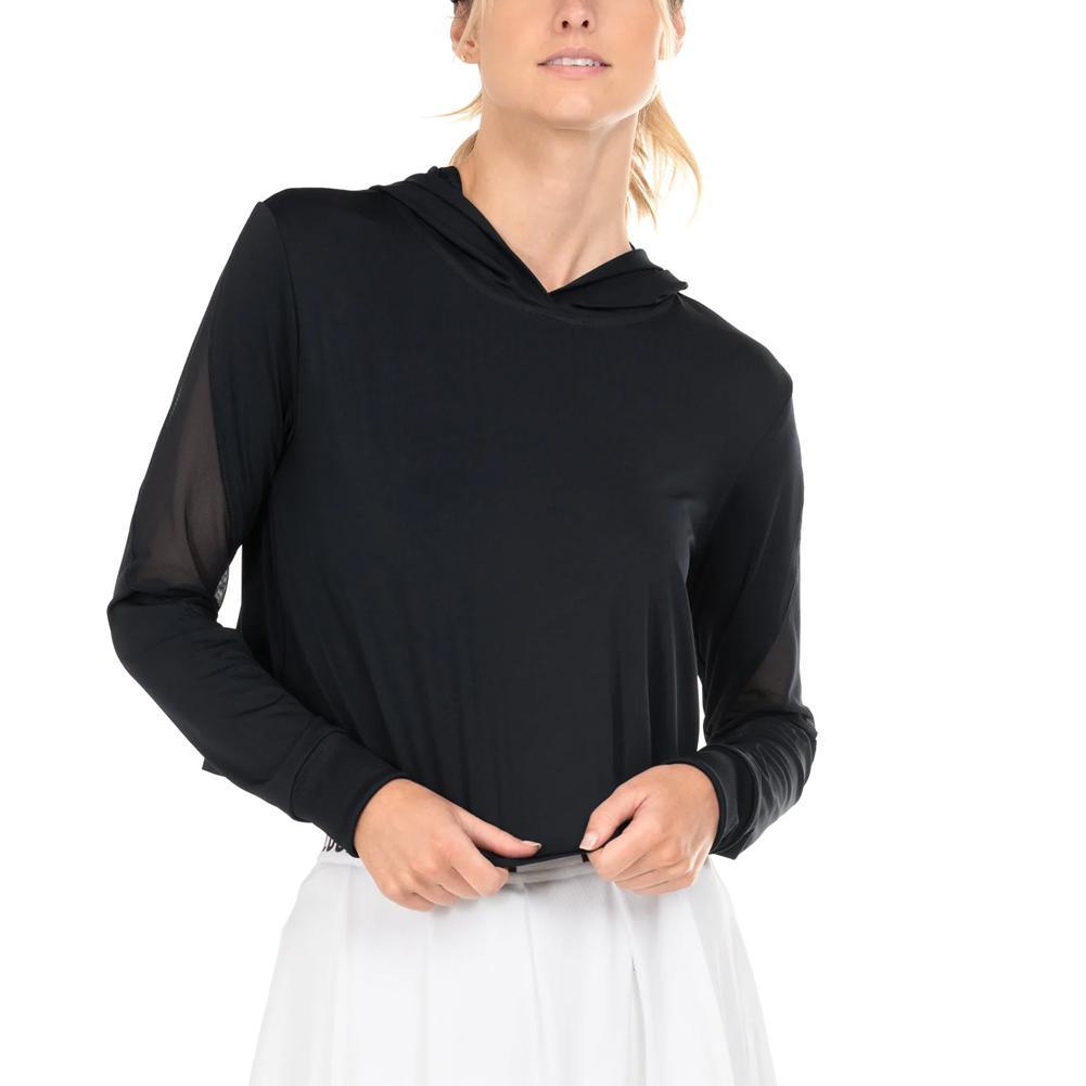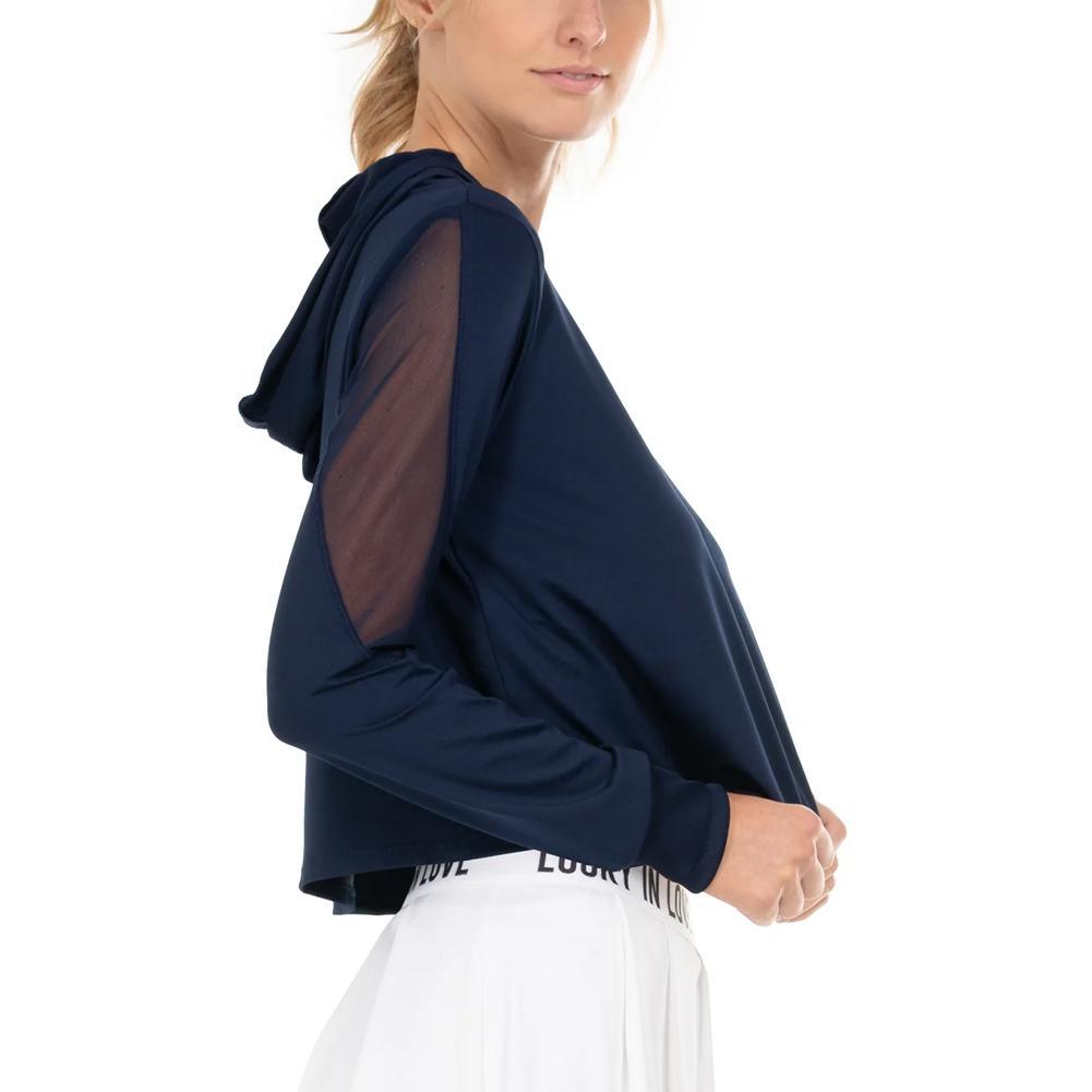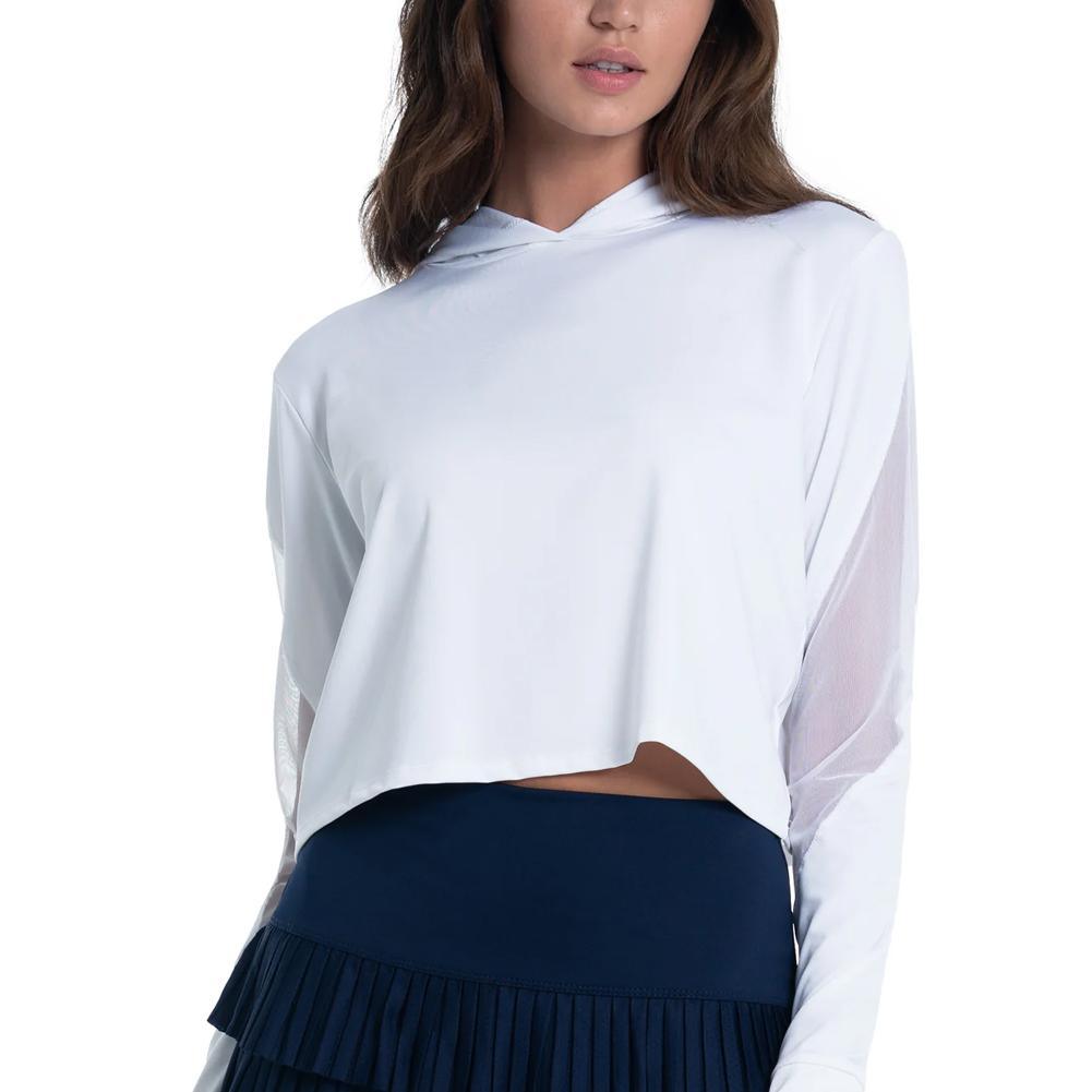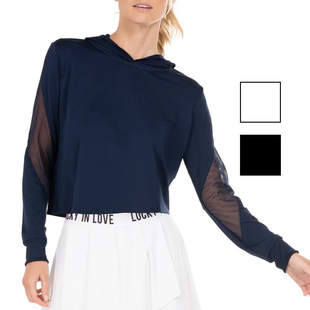 Get into the game in our Lucky In Love Women's Cindy Crop Tennis Hoodie. This tennis hoodie has mesh panels in the sleeves and a slightly cropped look for additional breathability. Complete with a hood for added style and comfort from light rain or to keep in warmth.