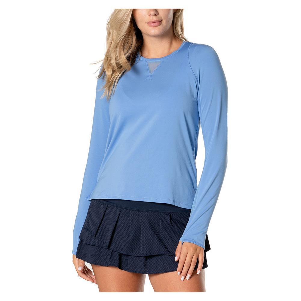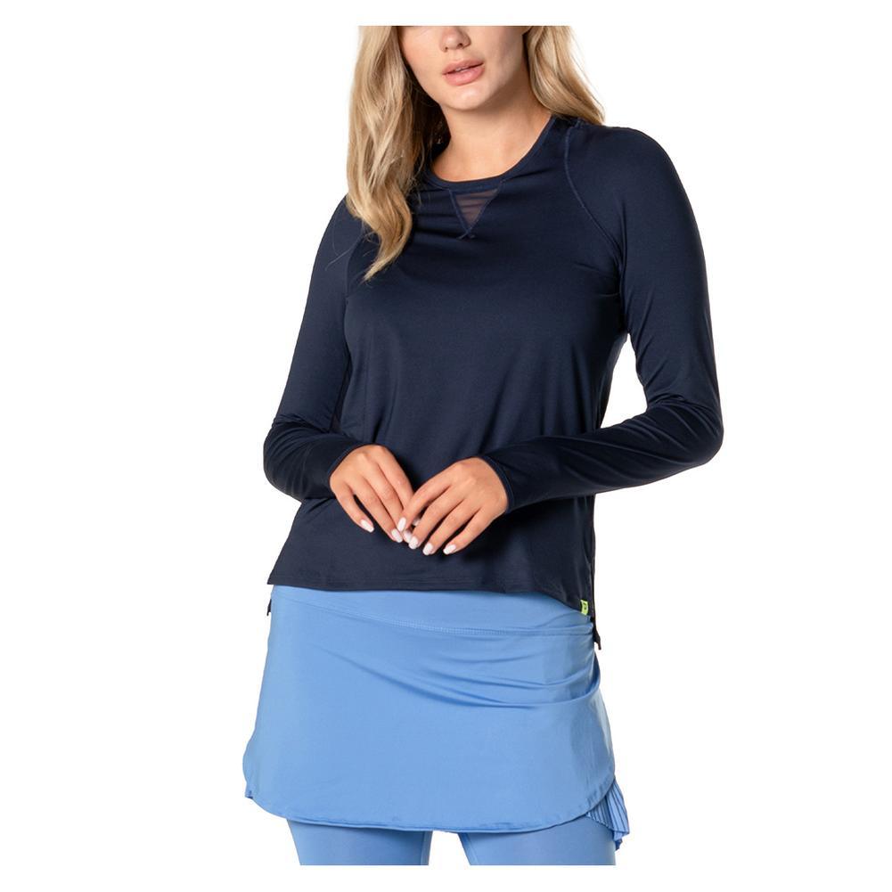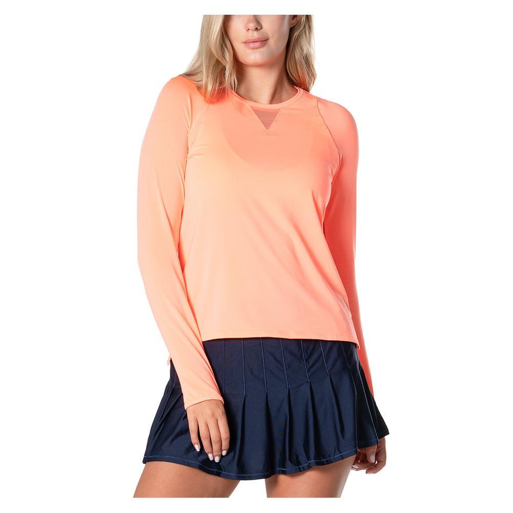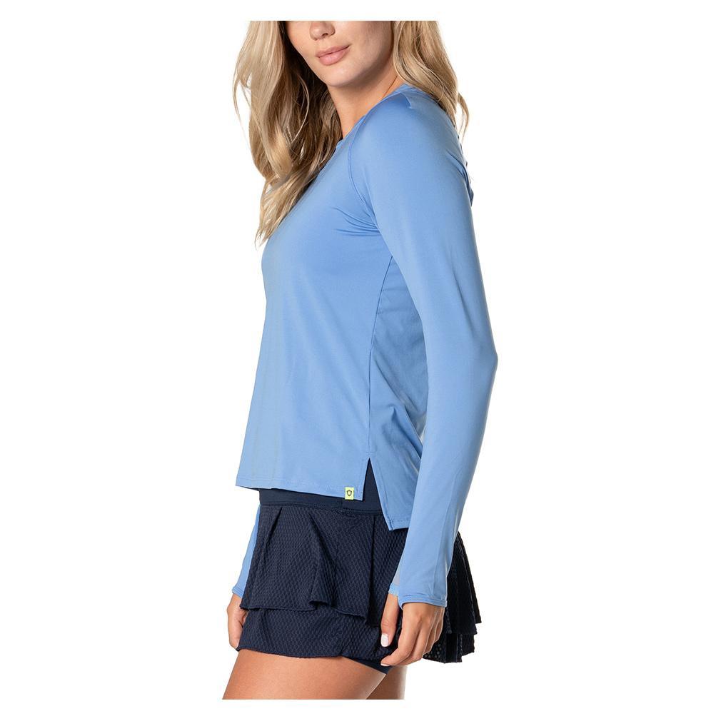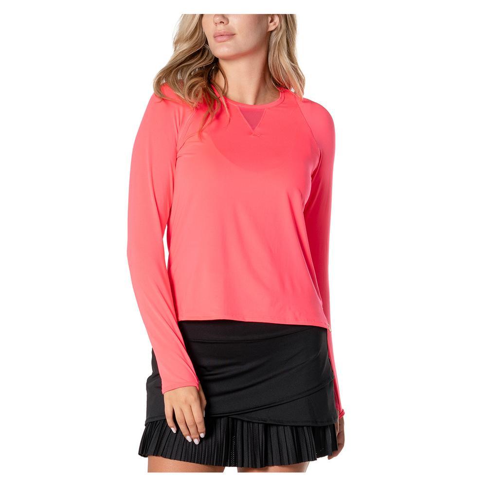 Spread the LUV with the Lucky in Love Women's High Low Breezy Long Sleeve Tennis Top. With sun protection rated at UPF 50+, this top offers the ultimate UV blocking to keep your skin safe from sun damage. Its V-neck panel offers impeccable style without sacrificing the comfort of its crew neckline. Raglan sleeves give your arms a more natural feel for serves and swings, plus the front seams offer a better fit that accentuates a flattering silhouette.