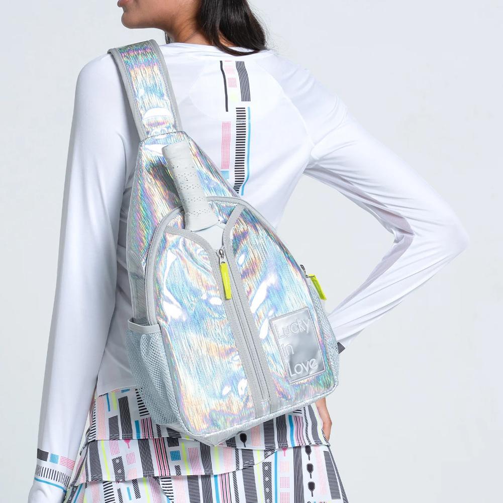 Enter the pickleball court feeling like royalty with the Lucky in Love Women's Lucky Pickleball Bag. This pickleball bag, designed to be slung around your body, comes with a detachable phone case, space for 1-2 paddles, and a pouch for all those accessories you might need. Its iridescent color is sure to make you shine brighter than the competition.