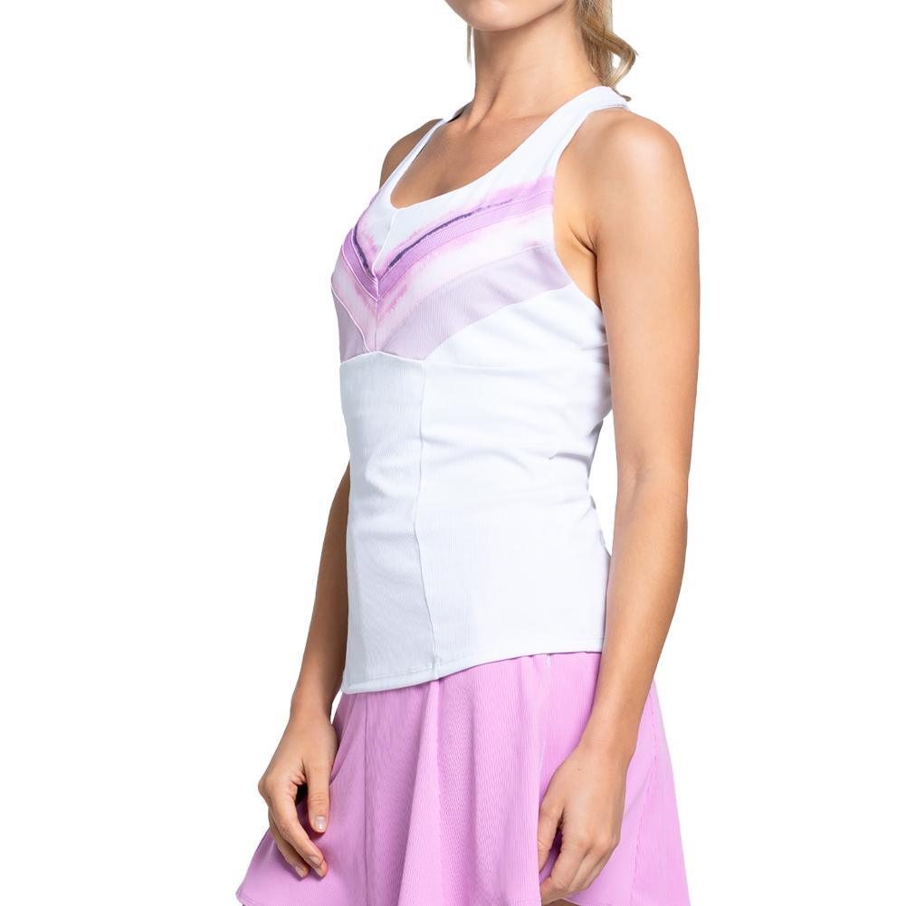 Ace your game with the Lucky In Love Women's Mystic Petal Racerback Tennis Tank with Bra White. Featuring a striking top half in pink and purple hues, this tank offers a bold and vibrant look. This racerback tank provides better support and stability during your on court activities. The built-in bra feature made for comfortability, makes it easy to be confident on the court. This tank combines style, performance and support for all your tennis sessions.