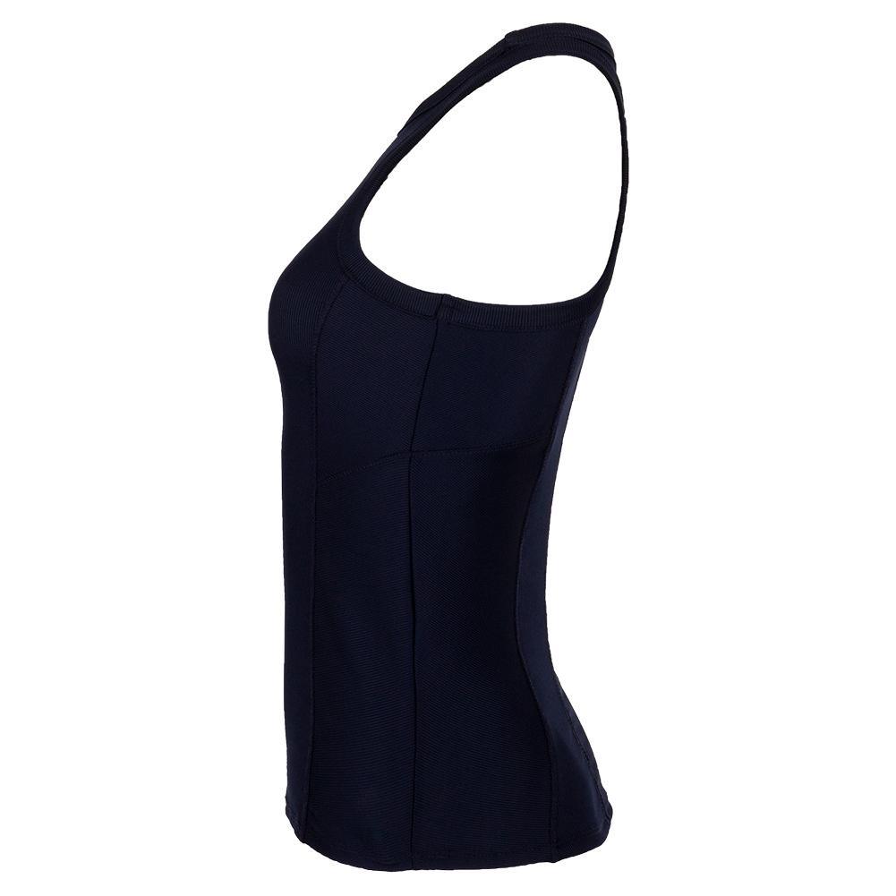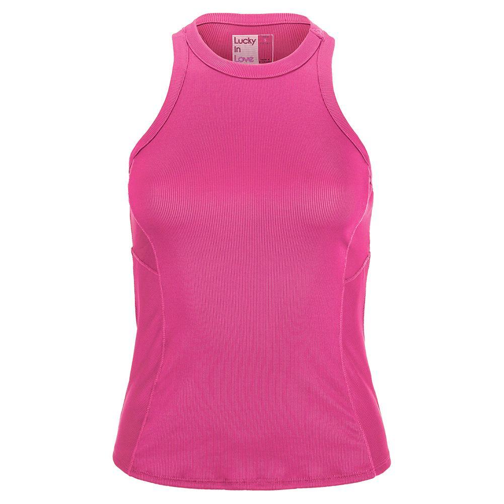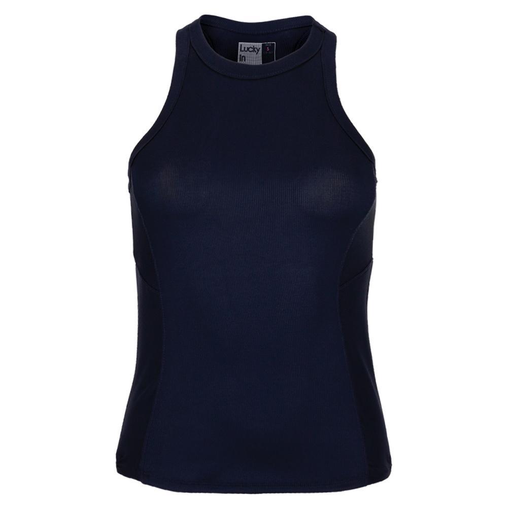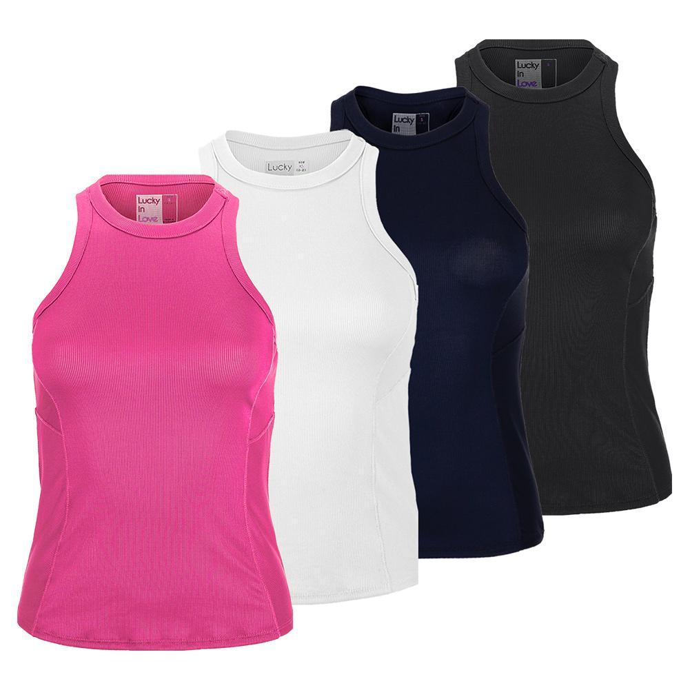 Serve up major style with the Lucky In Love Women’s One Love Rib Tennis Tank in Midnight! The solid color and high neckline of this tank give it a classic feel, while the sporty silhouette allows for a greater range of motion for overheads and serves. Moisture-wicking fabric will keep you cool, dry, and comfortable, even during the heat of the game. Pair this tank with the Lucky In Love Women’s Long Techno Stripe Pleated Tennis Skort for the complete look!