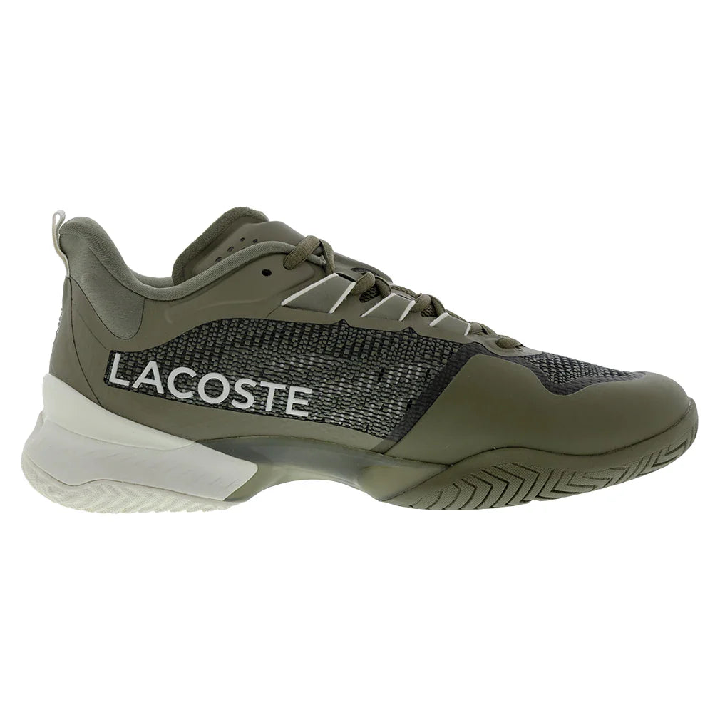 The Lacoste Men's AG-LT23 Ultra Tennis Shoes offer tour-level stability for high-performance tennis players. The lightweight and responsive design is designed to push your abilities further than ever before. Pebax technology provides energy return via the LSRFoam midsole, which works in concert with the TPU plate chassis and heel stabilizer for enhanced stability. The upper is constructed of an engineered 'Pique' woven mesh for comfort and breathability, and the outsole works for all surfaces thanks to Lacoste's brand-new rubber compound, LineGrip. The AG-LT23 Ultra is a worthy update from Lacoste. Look for this shoe to be worn by Lacoste's best players on tour.