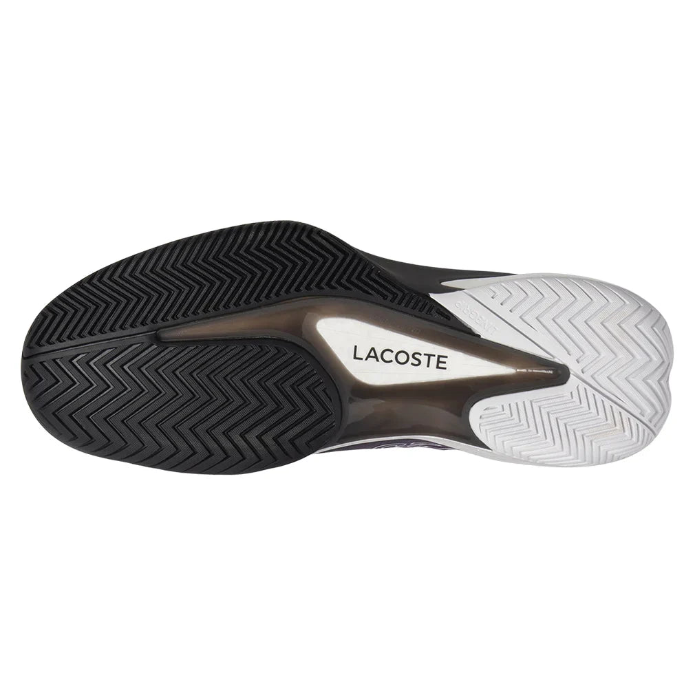 The Lacoste Men's AG-LT25 Lite Tennis Shoes offer tour-level speed for high-performance tennis players. The lightweight and responsive design will push your abilities further than ever before. A stretch-fit sock construction gives the player an uncompromised fit around their foot and ankle, perfect for agile players who cover distance at speed on the court. Pebax technology provides energy return via the full-length LSRFoam midsole, which is encased in a Pebax plate for stability. The upper features a transparent, lightweight engineered jacquard, and the outsole works for all surfaces thanks to Lacoste's brand-new rubber compound, LineGrip. The AG-LT23 Lite is a new speed-focused tennis shoe from Lacoste. It offers greater flex at a reduced weight when compared with the AG-LT23 Ultra.