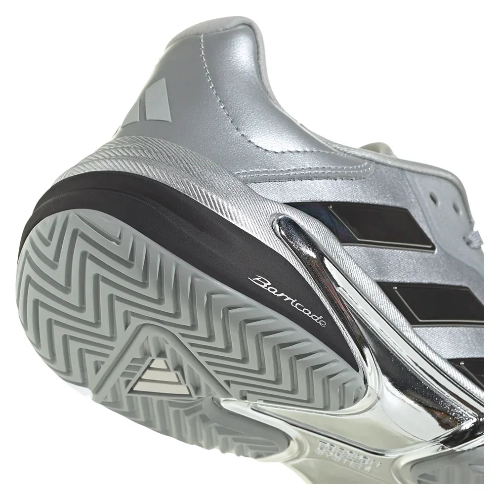 The adidas Men's Barricade 13 Silver Edition Tennis Shoe is designed for a tennis player who needs support and stability to compete at the highest level. The Barricade uses recycled BOOST material in an improved abrasion pattern for the shoes' medial upper. The tongue has been refined for a soft and stretchy feel. For torsional stability, adidas built the Barricade with a TPU midfoot shank. New in this version is a dual-density midsole construction, which places a lighter and softer foam in the heel and a firmer foam in the forefoot. This creates more lateral stability and better overall comfort. Numerous ATP and WTA touring professionals wear the Barricade. To celebrate 25 years of the Barricade, the tongue has a special "25" logo.