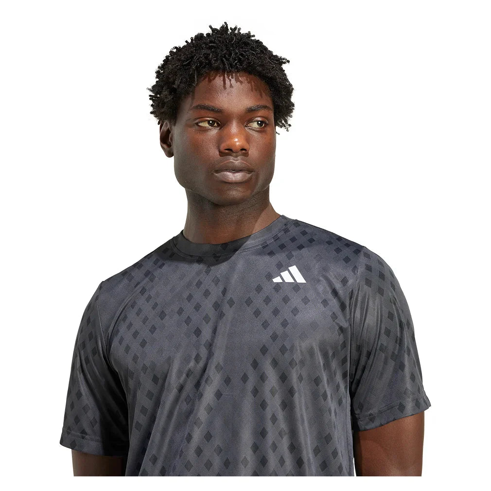 Maximize your chances with the adidas Men's Club Graphic Tennis Top. This crew neck shirt is designed with a tonal diamond pattern that has a sophisticated feel. The lightweight fabrics ensure you can play to the best of your ability while maintaining a sharp look.