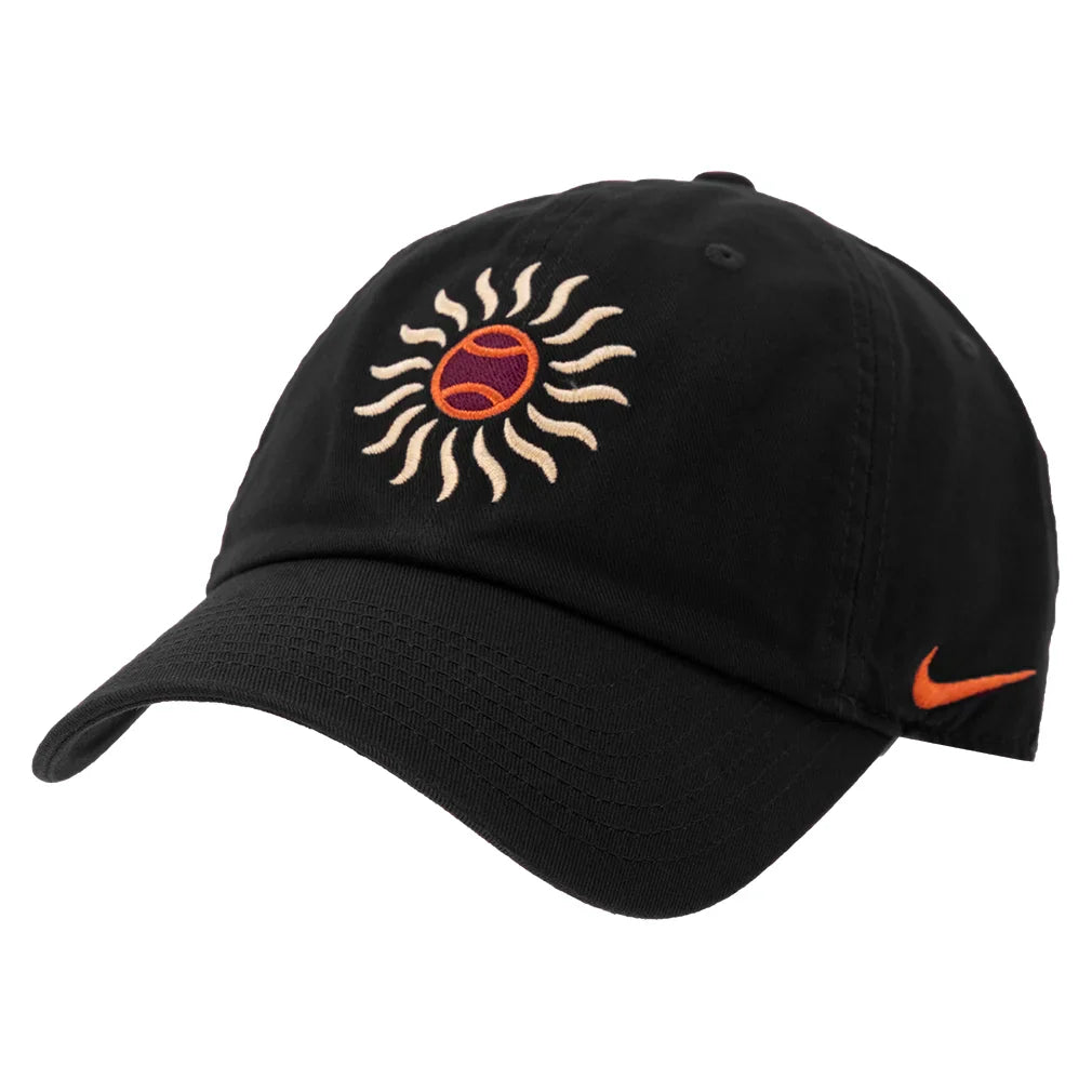 Get in the summer vibe with the Nike Men's Club HD Embroidery Tennis Cap. Its front side features a tennis ball graphic depicting a bright shining sun The unstructured construction and adjustable backstrap ensure you get a comfortable fit. Whether you're on or off the court, this hat will surely elevate your fashion.