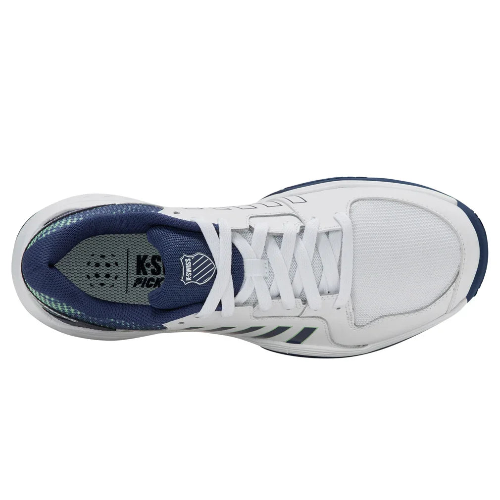 The K-Swiss Court Express Pickleball Shoe is the perfect shoe for developing players looking for unrivaled comfort and support. Built on the top-selling Express platform, its lightweight EVA Midsole adds shock absorption and energy return to every move. A leather upper ensures maximum stability, while a textile collar lining and Ortholite sock liner maintain breathability. Its durable rubber outsole provides flexible traction on all pickleball courts.