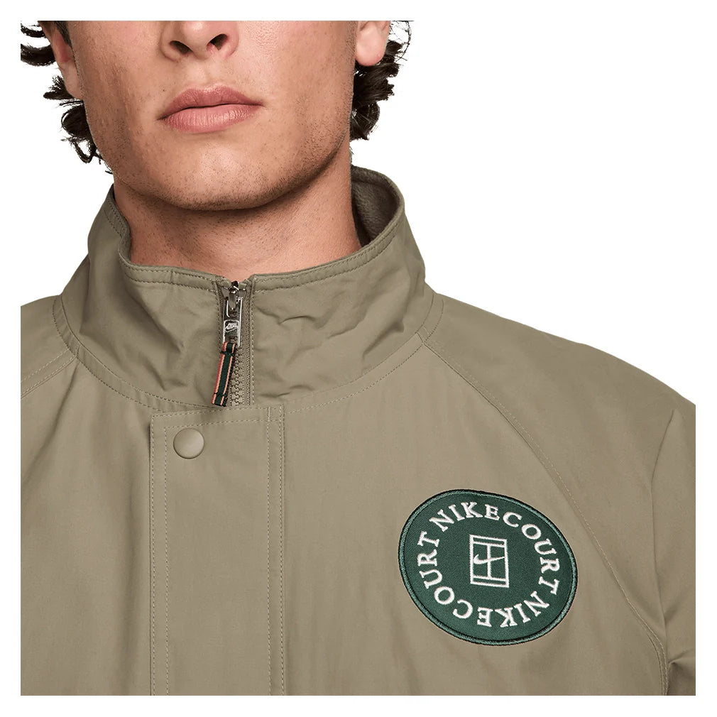 Stay warm and court-ready with the Nike Men's Court Heritage Tennis Jacket, featuring a relaxed-fit design with luxurious brushed fleece lining and a smooth woven shell that delivers perfect comfort for cooler training sessions and pre-match warm-ups. The roomy cut through the chest and sleeves allows effortless layering and unrestricted movement. At the same time, the full-zip construction with storm flap provides reliable protection against cool air and moisture so you can focus on your game regardless of the weather.