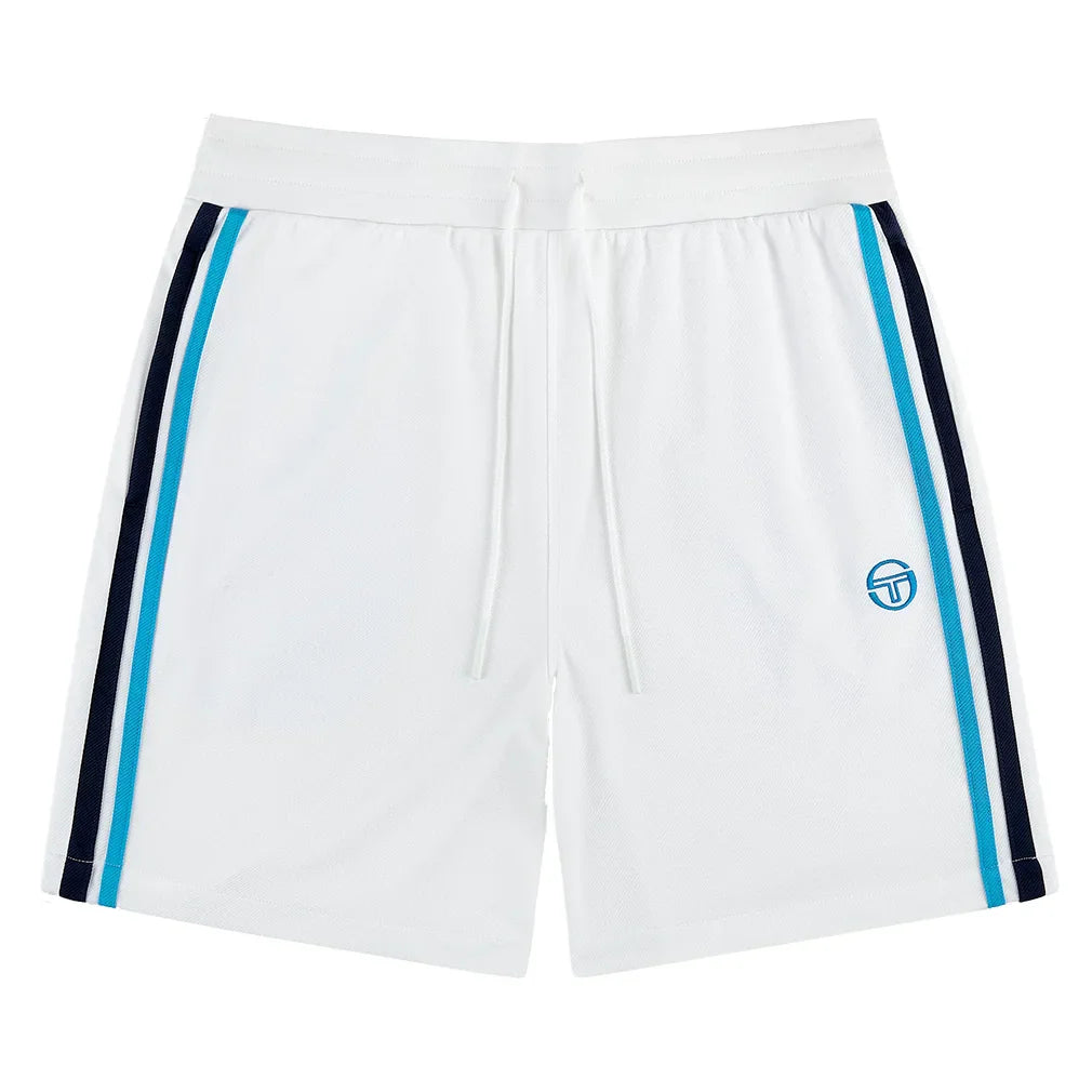 The Sergio Tacchini Men's Damarindo Tennis Short offers heritage style, using double stripe taping at the sides for a distinctly retro look. Premium materials provide distraction-free comfort that lets players stay focused on the game, with an elastic waistband and drawcords allowing for the perfect fit. An embroidered ST monogram logo adds the finishing touches to the design.