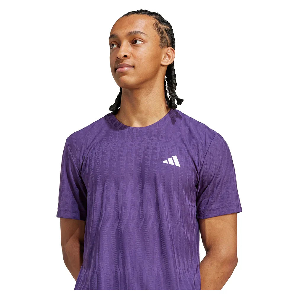 Own every point in the adidas Men’s FreeLift Tennis Top. Designed with a slim fit and FreeLift construction, this tee gives your shoulders full freedom to rotate, so you can swing big without feeling restricted. HEAT.RDY tech and breathable mesh panels team up to keep you cool and focused—even when the match heats up. Whether you're battling baseline to baseline or charging the net, this top has your back. Plus, it's made from 100% recycled materials, so your game leaves a lighter footprint.