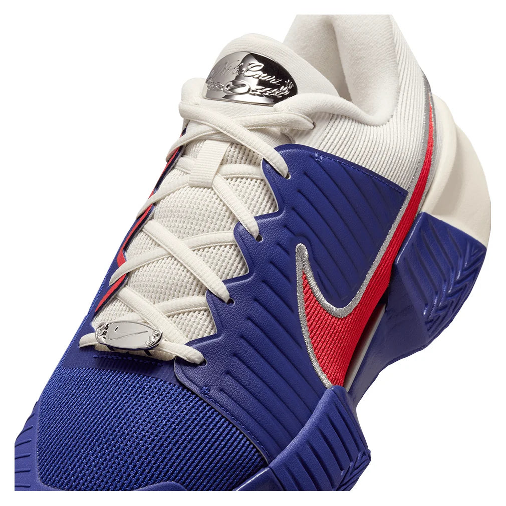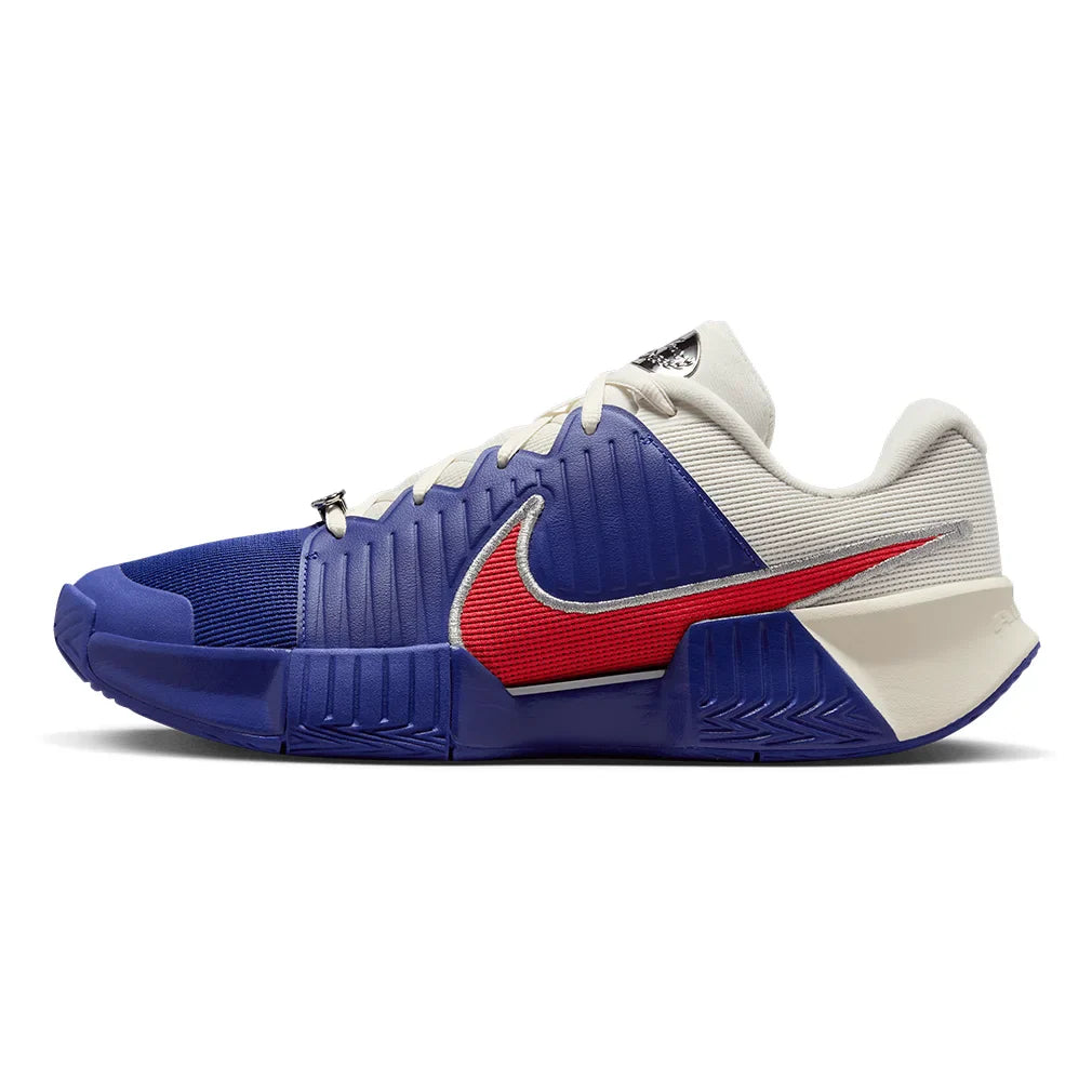The new Nike Men's GP Challenge Pro Tennis Shoes offer a wide base for stability and soft foam cushioning for the midsole. The stability is further enhanced by a midfoot plastic plate, which helps with quick direction changes. The medial toe has extra rubber to help withstand excessive wear and tear, and the forefoot is protected with high-abrasion rubber for added traction. The traditional U-throat design provides easy entry and adjustment, and an extra-padded tongue is constructed with breathable mesh for cool comfort.