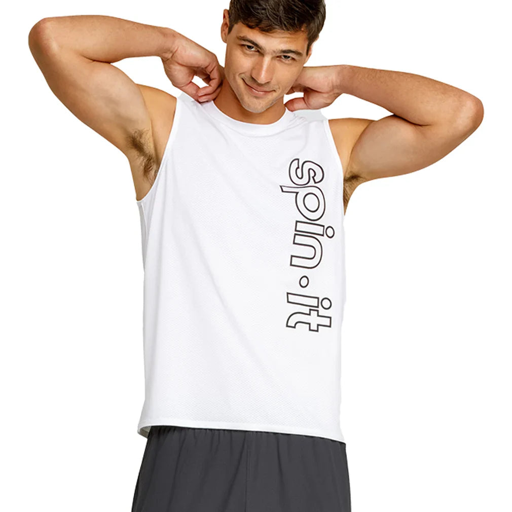 Take the Spin-It Men's Josh Pickleball Tank for a spin! Its high neckline and straight-cut design combines with the open arm holes to create a tennis top with good coverage and upper arm movement range. The performance fabrics have UV protection rated at UPF 50+ to keep your skin safe from sunburn in covered areas. An oversized logo print along the left side solidifies the athletic design for a sleek yet simple look.
