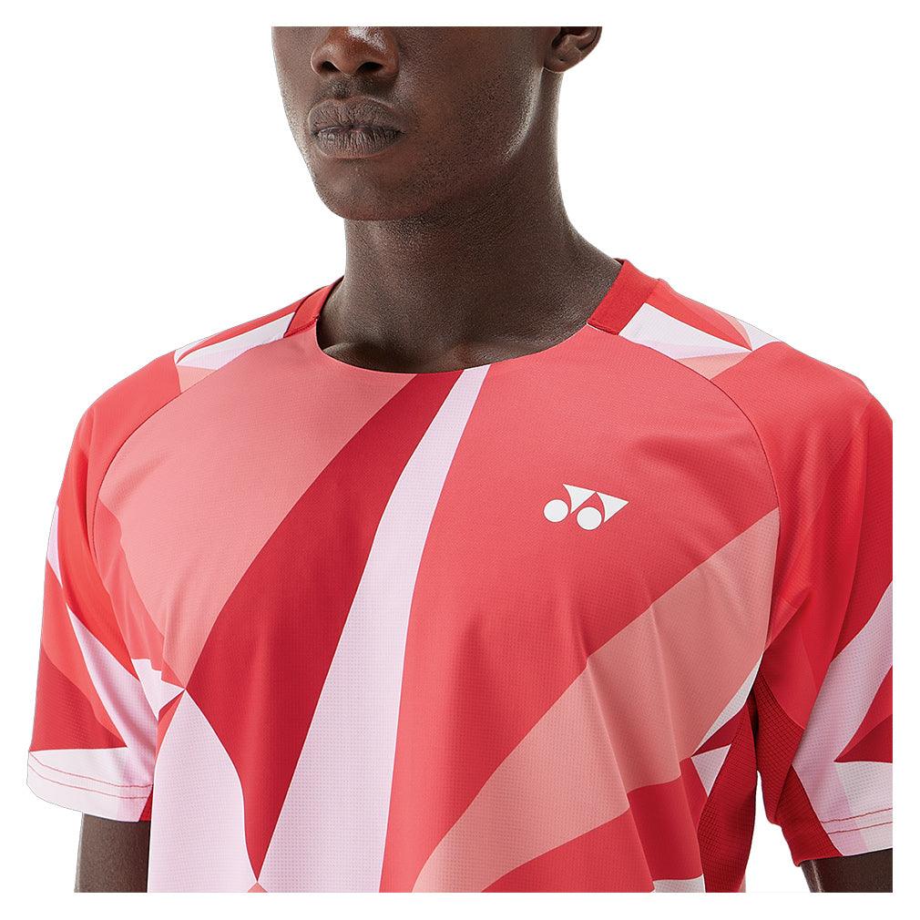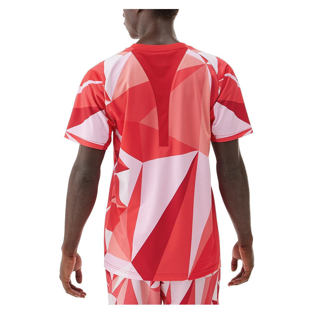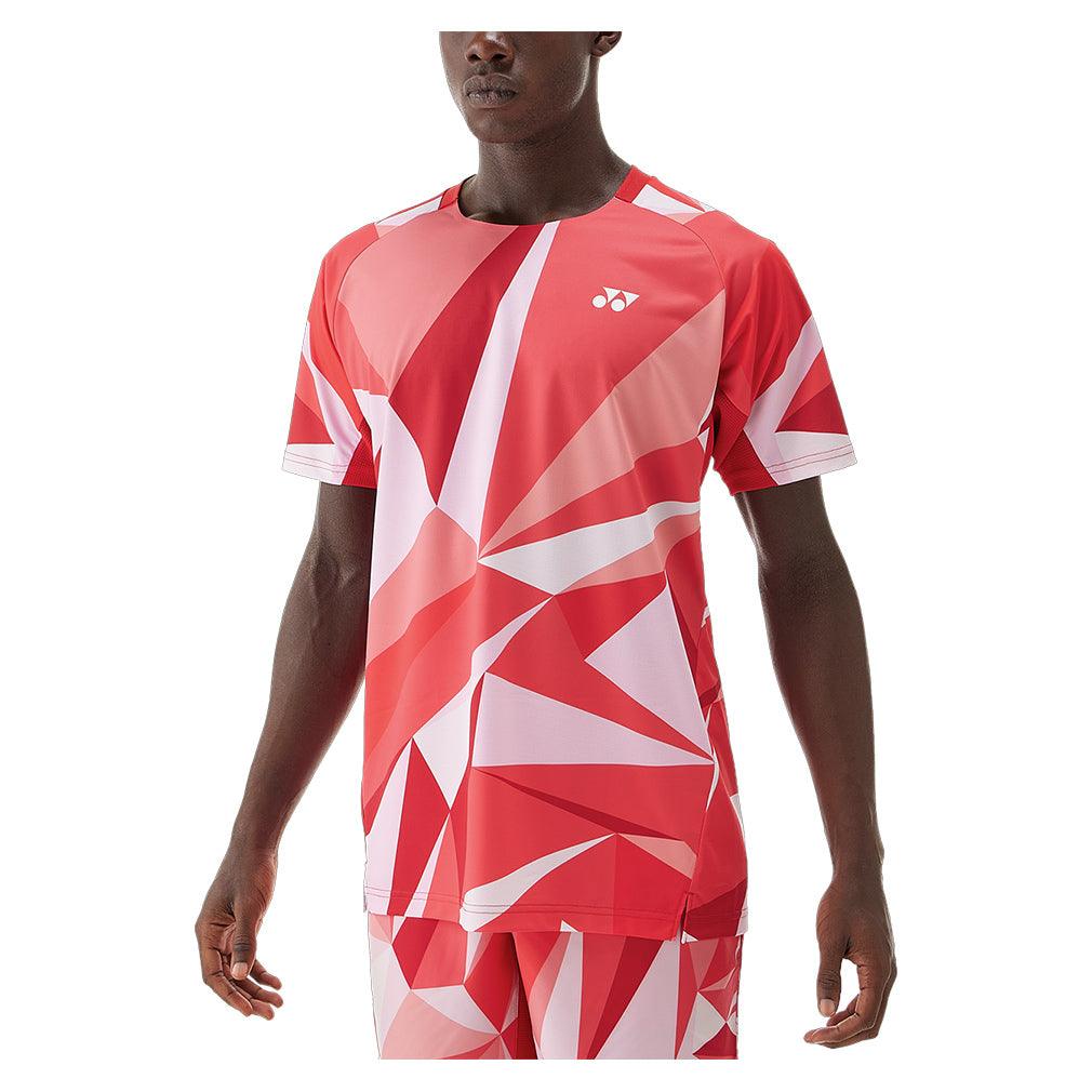 Challenge the world with the Yonex Men's Pattern Tennis Top. Besides having a striking geometric pattern, this crew neck shirt is designed to maximize your performance with Precision Move tailoring to smooth out your movements. Combine that with Verycool technology uses heat-absorbent, fast-drying fabrics to lower body temperatures by up to 3 degrees Celsius. UV reduction protects your skin from sun damage by blocking out up to 92% of harmful UV rays, which also has the side benefit of staying cool.