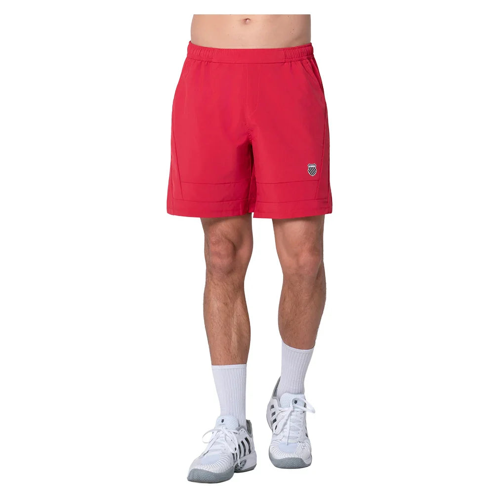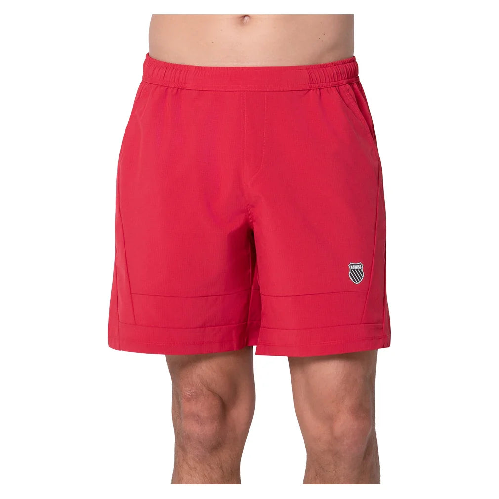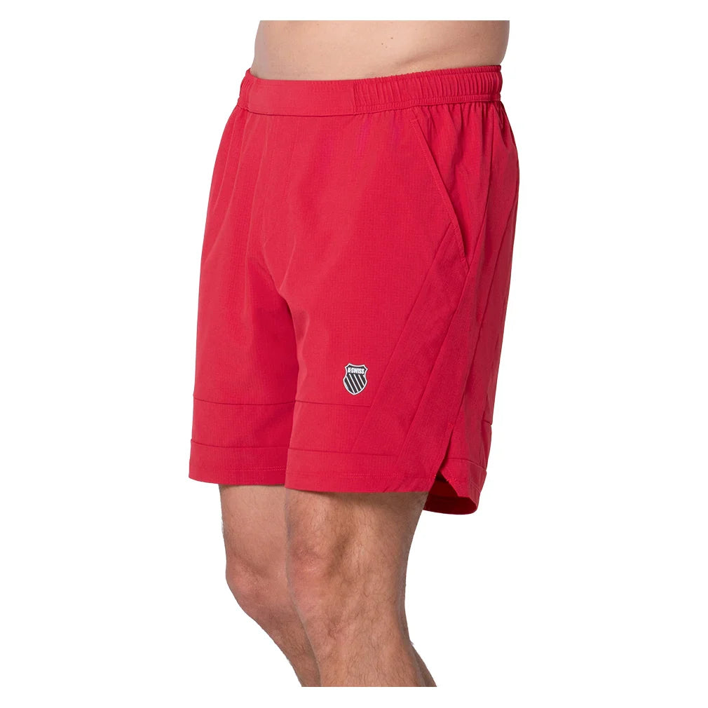 Enter the court like a champ in the K-Swiss Men's Ripstop 7 Inch Tennis Short. These boxing-inspired tennis shorts are made from a lightweight stretch woven fabric to enhance your comfort and performance. A ripstop texture and moisture-wicking fabric help provide more breathability, which means you'll stay cool no matter who you face. These men's tennis shorts are a dark red color, like a glass of delectable red wine, accompanied by the iconic K-Swiss logo.