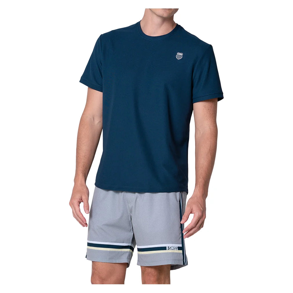 Reach for the stars with the K-Swiss Men's Stellar Short Sleeve Tennis Top. This piqued fabric shirt offers a simple and familiar silhouette that's easy to wear and pair with your favorite tennis shorts. The breathable fabrics help players keep a cool head and stay focused on the match to bring home the victory.