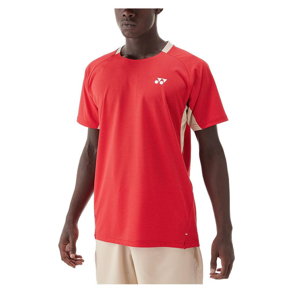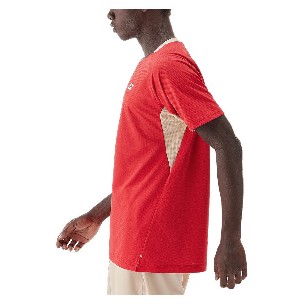 Challenge the world with the Yonex Men's Tournament Tennis Top. This crew neck shirt is designed to maximize your performance with Precision Move tailoring to smooth out your movements. Combine that with Verycool technology uses heat-absorbent, fast-drying fabrics to lower body temperatures by up to 3 degrees Celsius. UV reduction protects your skin from sun damage by blocking out up to 92% of harmful UV rays, which also has the side benefit of staying cool.