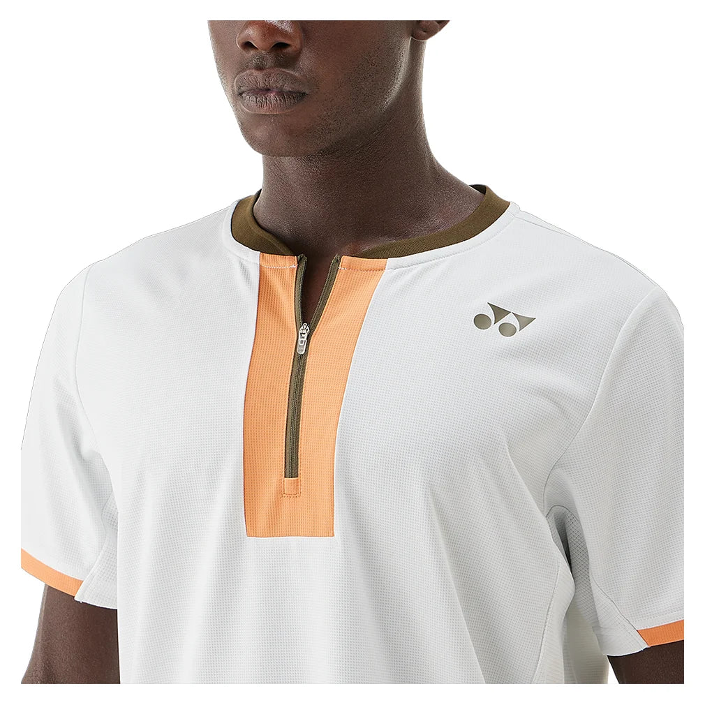 Let your skills shine through with the help of Yonex's Men's Tournament Zip Tennis Crew. It's designed with a quarter-length zip placket to provide modern comforts. Combine that with VeryCool fabrics that are cool to the touch and wick away moisture, and you get a shirt that excels in regulating body heat. Precision Move design with anti-static fabrics allows athletes to move freely and comfortably so they can give their best on-court performance. UV-blocking materials not only protect your skin from sun damage but also reduce heat build-up for even more cooling relief.