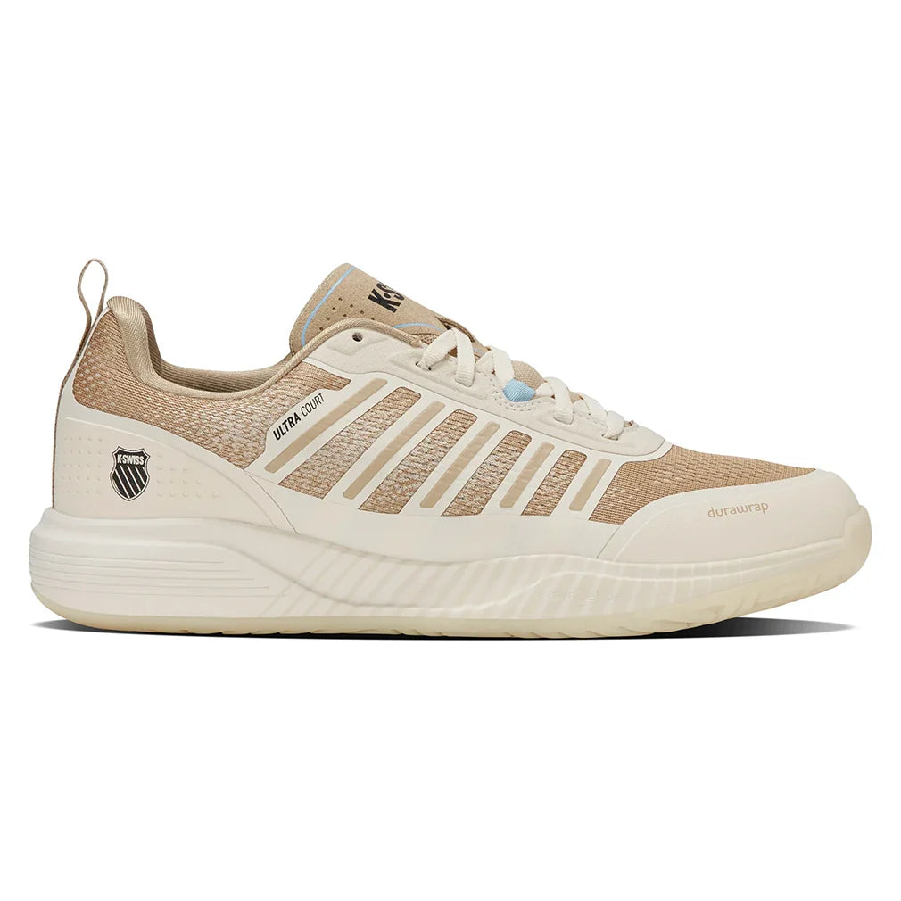 The K-Swiss Women's Ultra Court Pickleball Shoes are for the athlete seeking a crossover between a performance court shoe and the look and feel of their favorite pair of running shoes. crafted by adapting our best tennis technology to the sport of Pickleball. Engineered to optimize your performance, this shoe is designed to sit lower to the court, ensuring optimal connectivity while preserving a cushioned ride. With a breathable upper providing supportive heel lockage for stability during lateral movements, and DuraWrap on the forefoot offers a secure fit and added drag protection, every aspect is tailored to enhance your game.