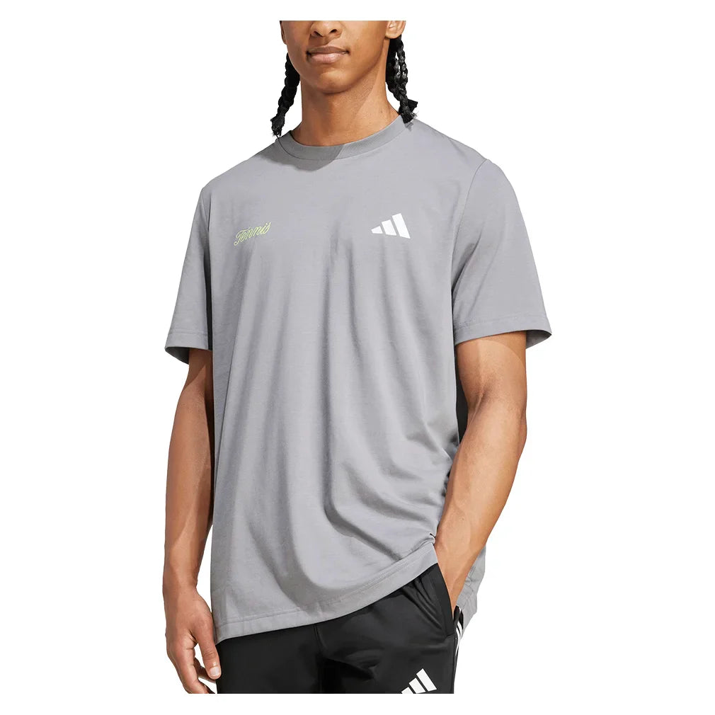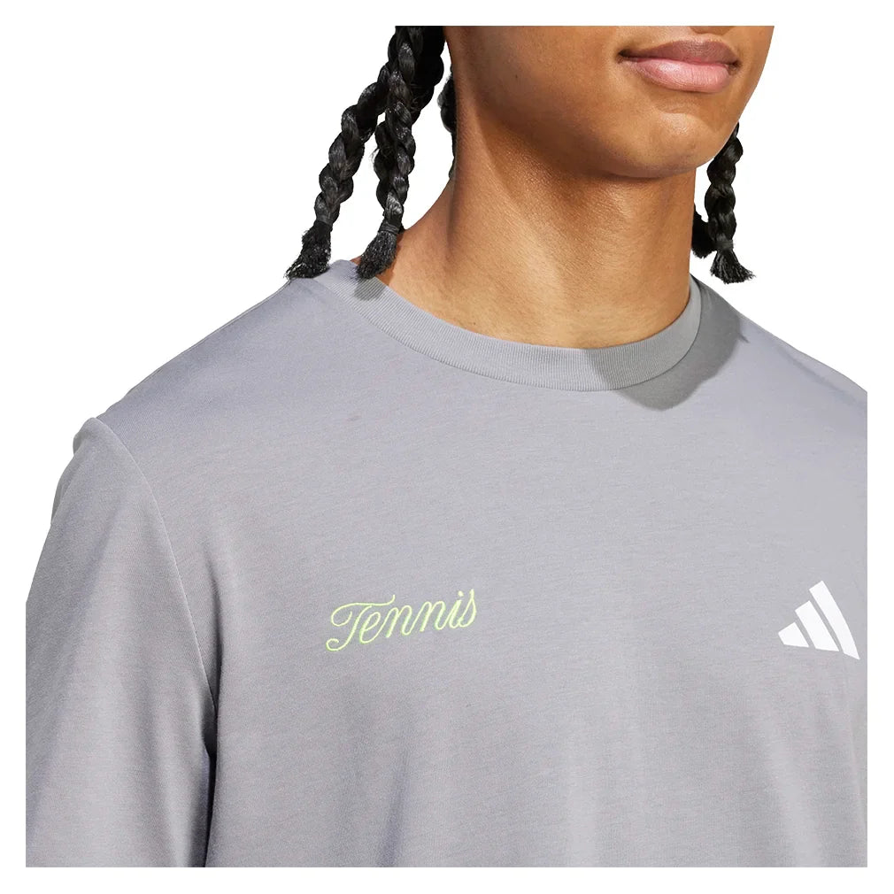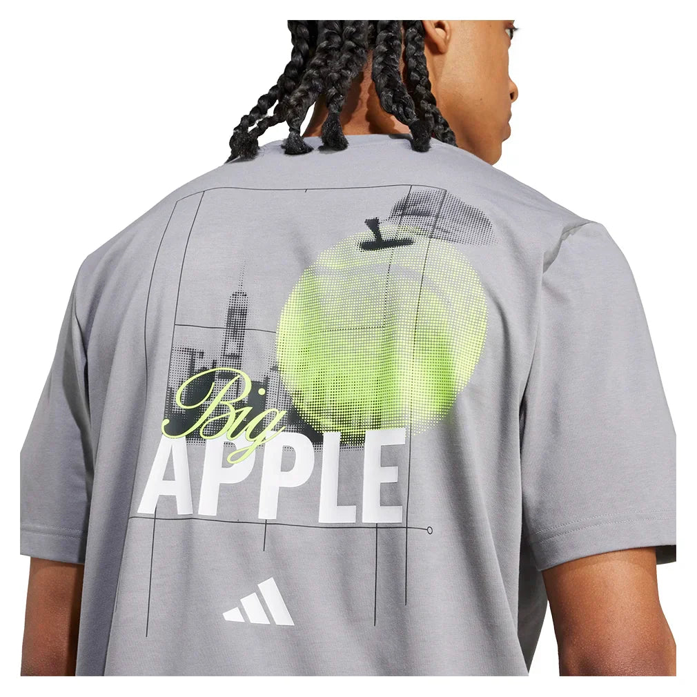 Take bite out of the Big Apple with the adidas Men's US Graphic Tennis Tee. Its back graphic showcases the famous New York cityscape. A crew neck design offers a familiar feel that lets you enjoy games on the court or on the sidelines in perfect comfort.