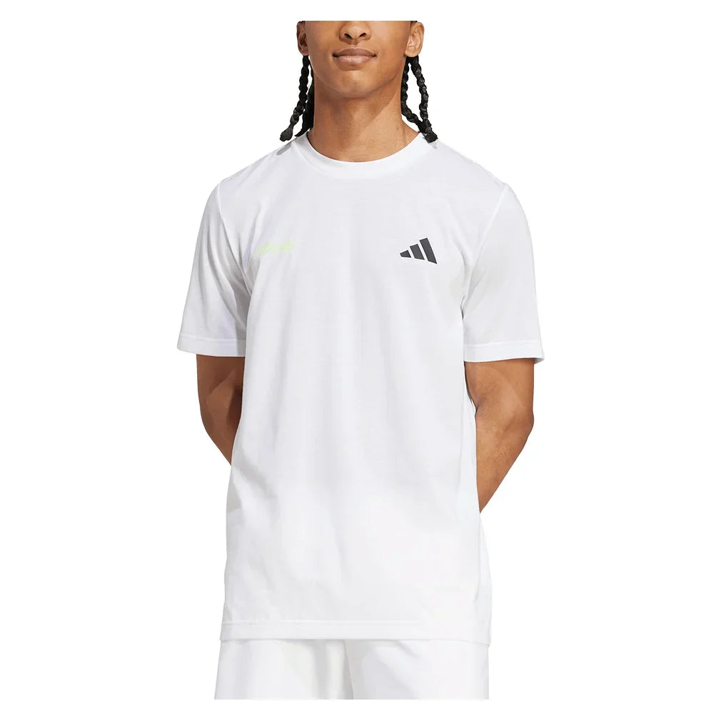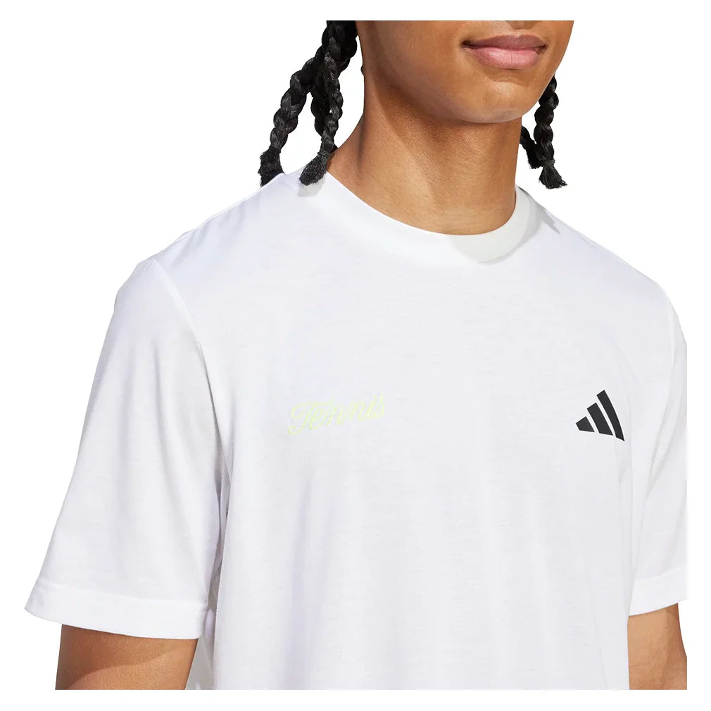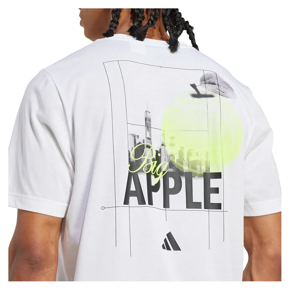 Take bite out of the Big Apple with the adidas Men's US Graphic Tennis Tee. Its back graphic showcases the famous New York cityscape. A crew neck design offers a familiar feel that lets you enjoy games on the court or on the sidelines in perfect comfort.