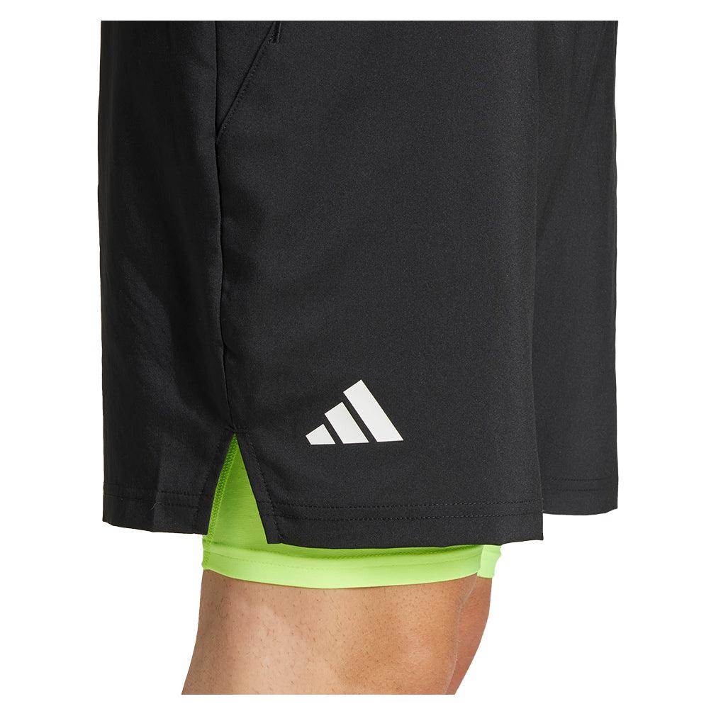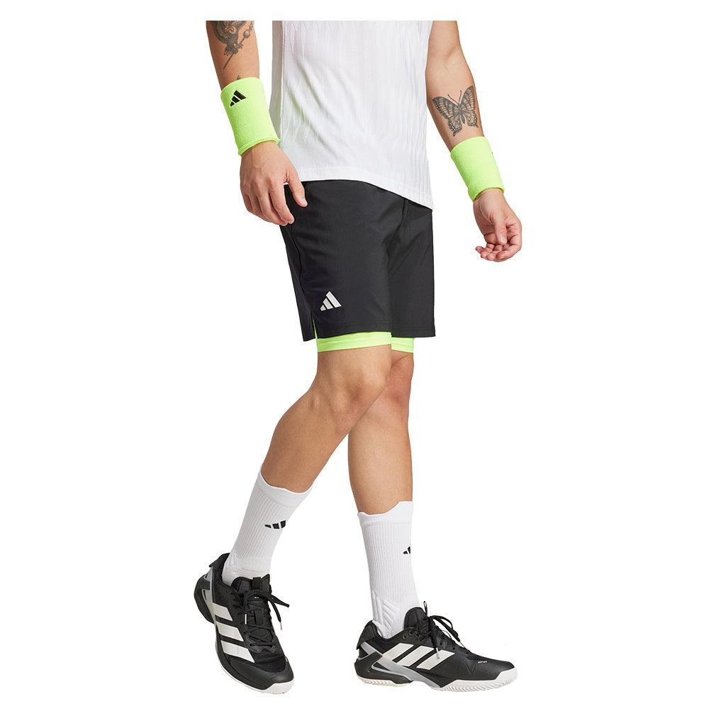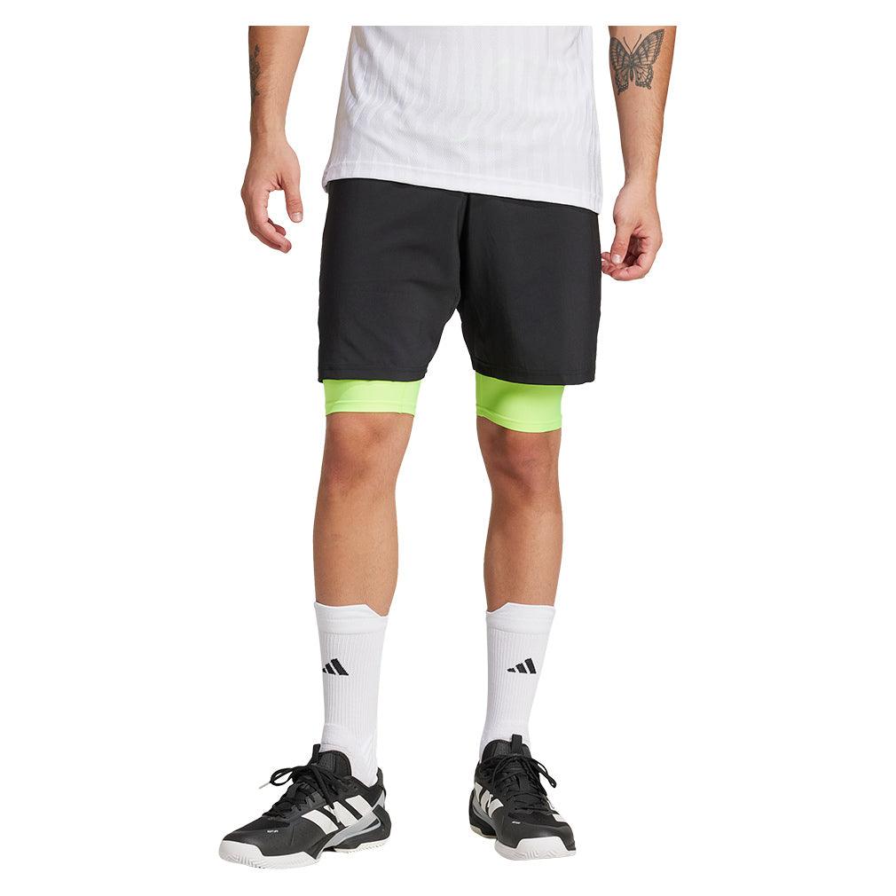 Men's Club 2in1 7 Inch Tennis Shorts Black and Lucid Lemon