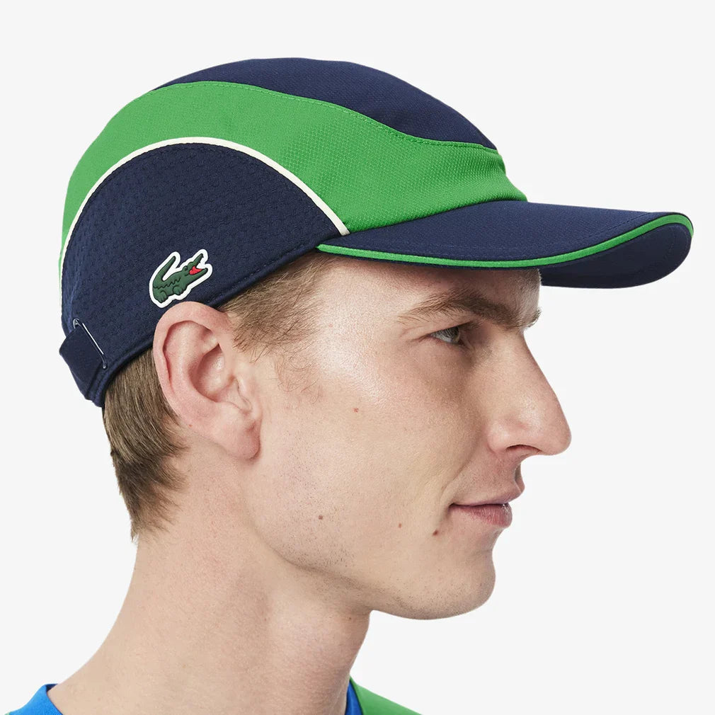 Knock it out of the park with the Lacoste Men's Colorblock Tennis Cap. Its unique design highlights the contrast between the dome and the base of the hat. Mesh perforations on the back and sides improve breathability to help you keep a cool head during a match.